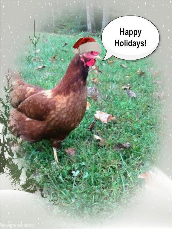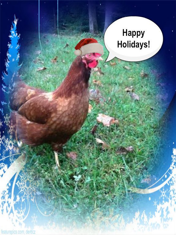 Winter background and a santa hat? Can she be saying "Happy Holidays!"
