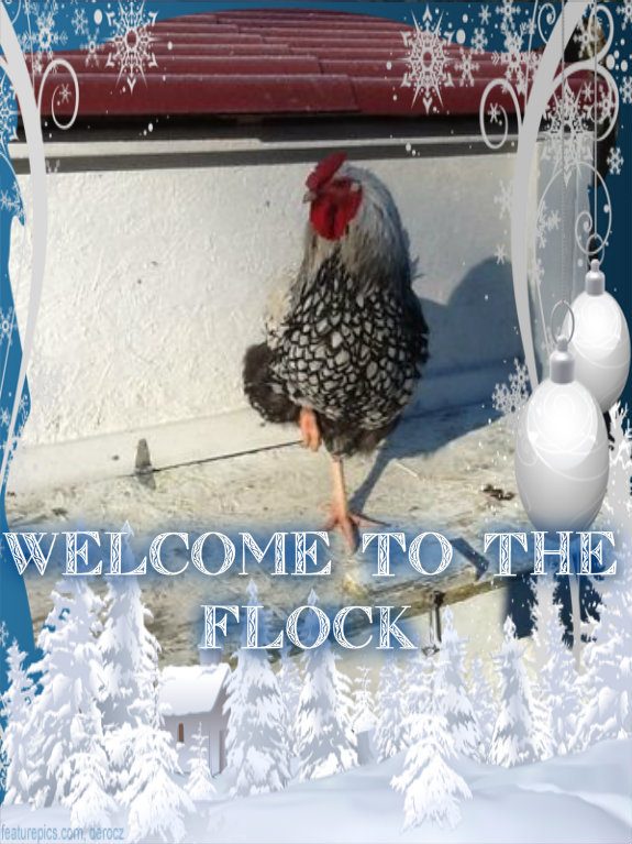 Could there be a winter background and at the bottom can it say welcome to the flock in a Crystal blue?