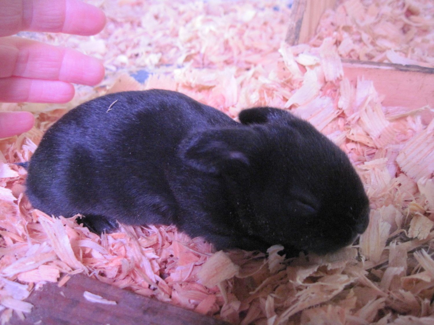 Ok this is for you rabbit lovers: I was horrible and just had to poke around Maggies nest. She has six fat and sleek little kits. All black and one has a little white spot in top if it's head. Also think of it as a little pay back for the cute chickie pics....hehehe