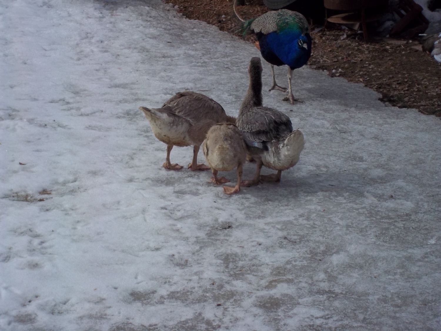 I didn't see my big peacock yesterday.. and not yet today, either.. he roosts on the edge of the big lean to roof.. I have not gone back there to check on him..