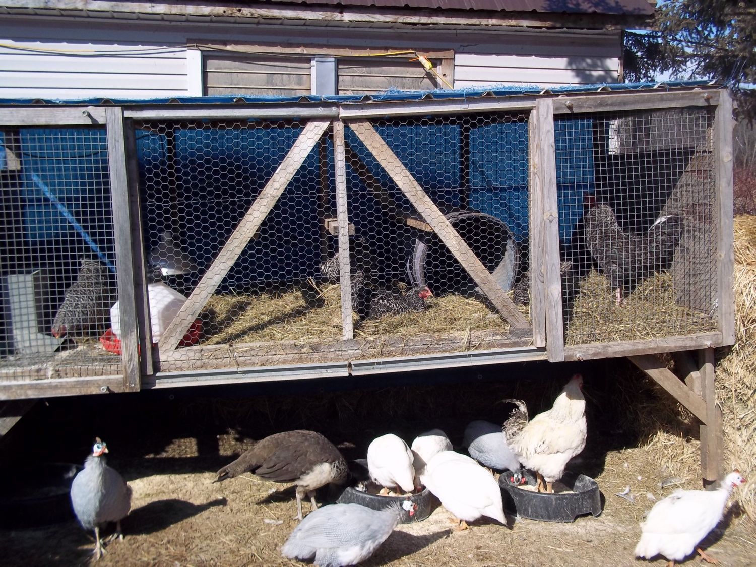 I was also wondering why a coop needed to be built if you have outbuildings...yeah let's get some pics already! I have birds in my milk house too. It started as a tack room for our overflow stuff that we dont keep in the trailer but it is kind of camp in there...it is built into the hill on one side and the rain/snow/melt seems through the wall...bad for leather. Not too bad for pigeons though! I also have a flock of chickens that likes to go in there...and my feral cat gets fed there too--it is a multipurpose building for sure! I like the drain in the floor.