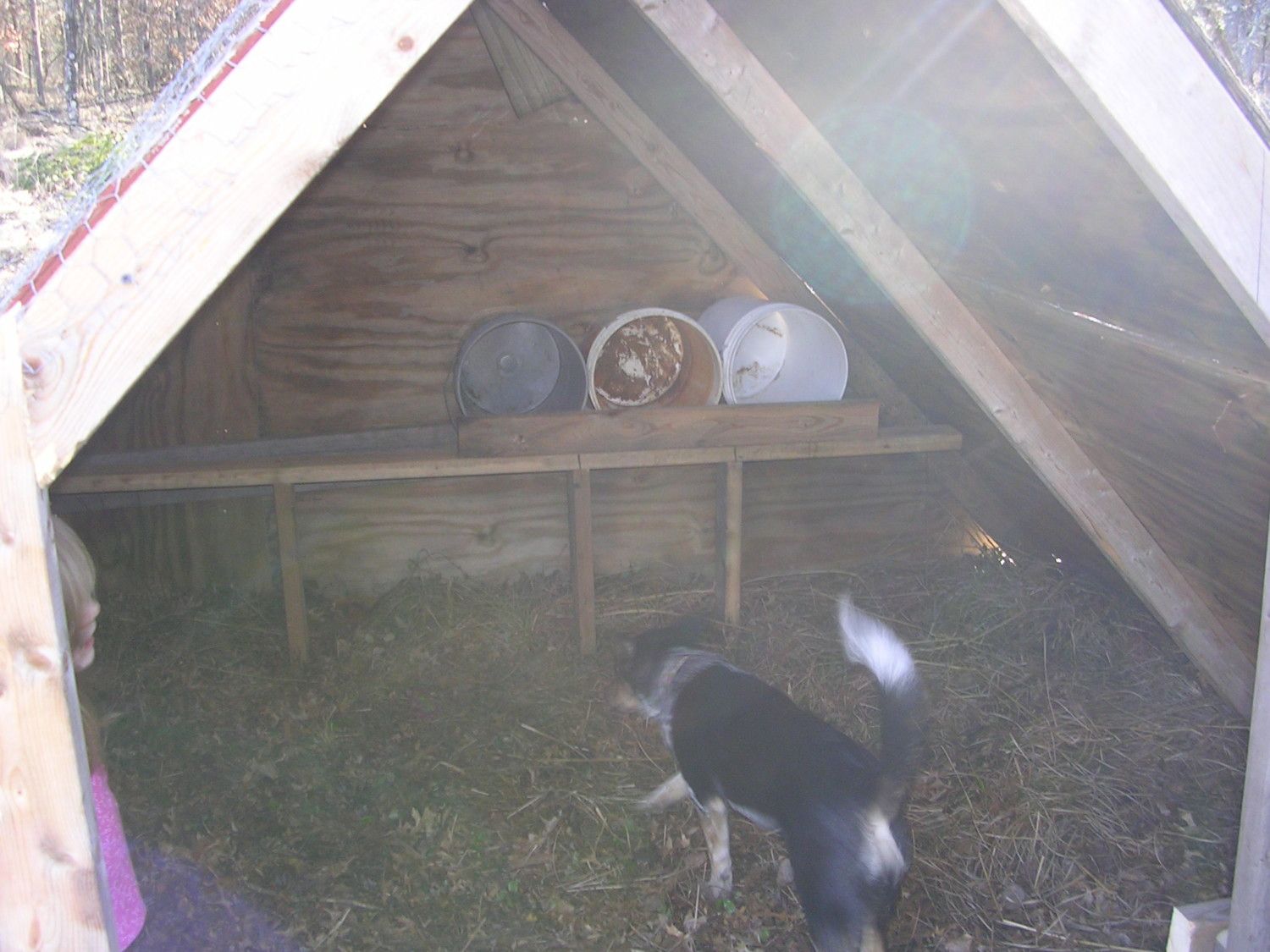 What a day. Worked in the yard all day. Finished the coop (well just need to paint and get hay). Hopefully the run will be done be cleaned up tomorrow so we can put up the fence. Oh and DD informed me she no longer wants to do Dairy Goats with 4-H , now she wants to do Ducks. Fine by me. I'm glad she told me before I shelled out $500 in goats and fence. DH was thrilled , he took over the goat house and moved his lawnmowers, snow blowers, and outdoor stuff to it in like 5 minutes lol. Well now I need to do the house since I was outside all day. ugh I'm making the kids help me though. Ok so here is a pic of the coop. I have some green paint I am hoping is enough to cover it, then it will math the house and shed. All the materials used to make the coop are from a colapsed shed we have on the property. :) I did have to buy some latches to keep it shut so the coop actually cost me $4. Oh and I swear before I build anything else I'm getting a new saw blade, I was so ready to throw the dang thing.