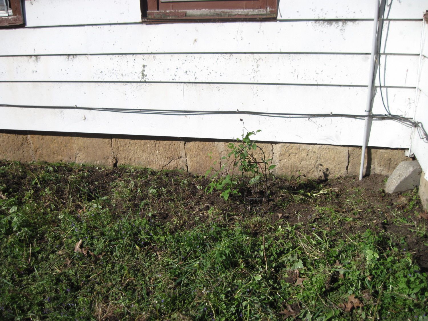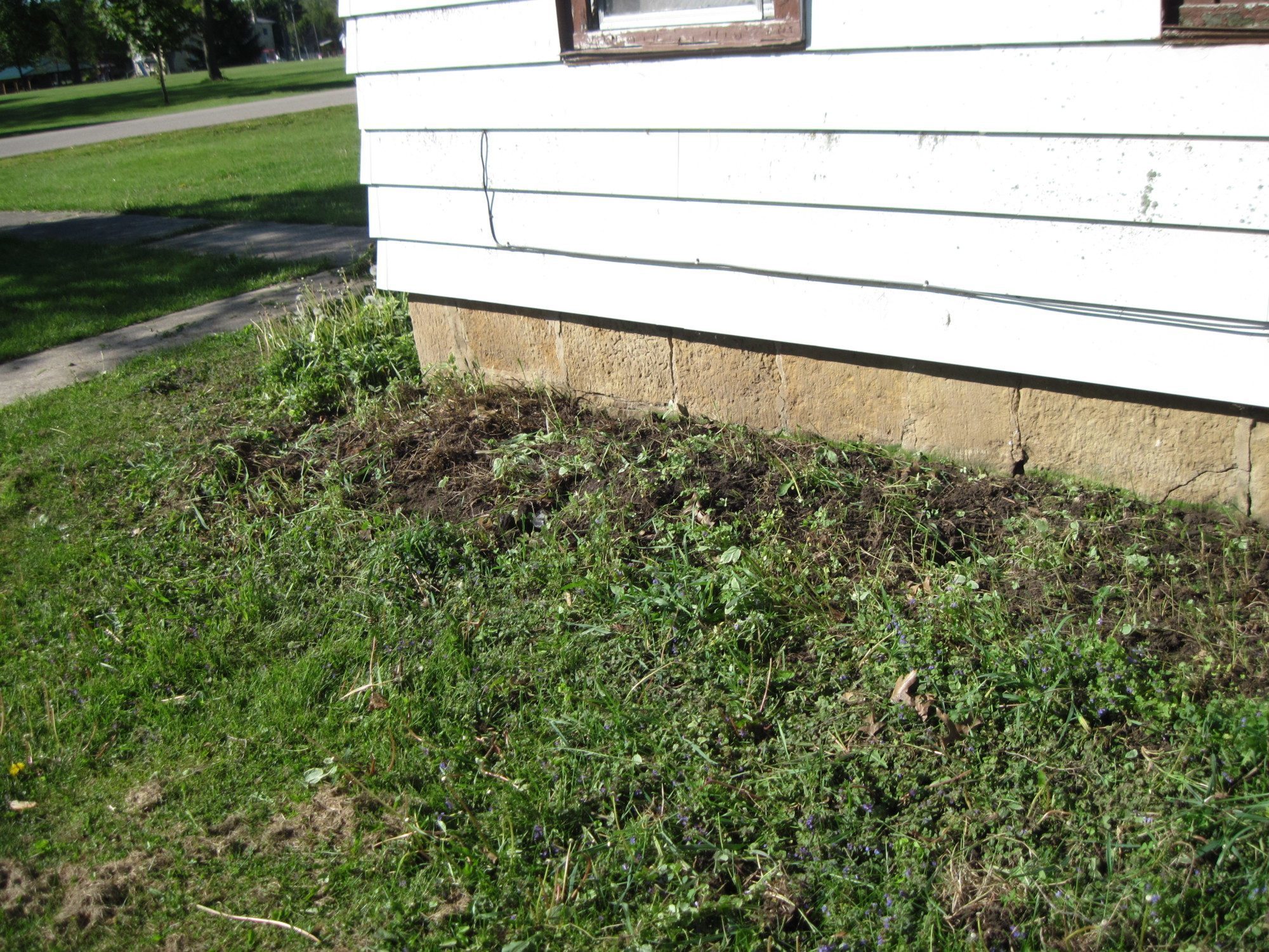 Ok so now that that frivolity is out of the way....hehehe.... I have a question for all of you Master Gardeners/Master Weed Identification People. Here is a picture or two of my front "flower bed". Or what eventually will be a front flower bed. I'm either going to plant an herb garden since I like useful plants instead of pretty plants...Useful and pretty are bonuses so herbs might be the ticket. Anyway, or some roses although this area only gets morning sun...or maybe some use-less plants like flowers and hostas....Anyway...here are my questions, I just pulled some weeds and have more to pull but I need to clean it up a little and put some form a weed killer/preventer down...What should I use and how often? Because I have two or 6 types of highly annoying weeds that grow back without fail every year. One is dandelions, the other is that chickweed stuff I think it's called. Another is a really annoying grass type plant, a few thistle things and the other two are the ones I have no idea what they are. So here, they are.: