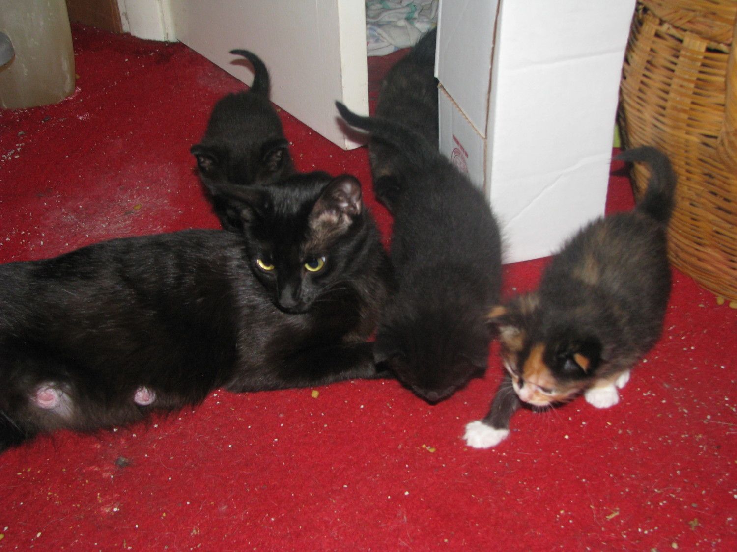 BTW... the kittens are 3 girls and a boy... wish I did that good with the chickens! LOL