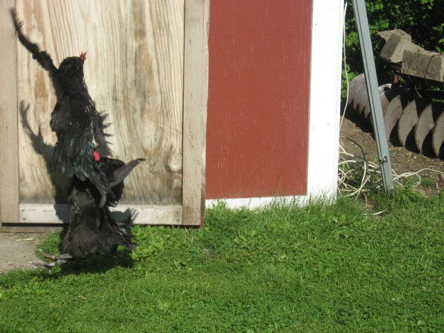 Hey neighbor! Cool roo's! But alas already too many here. Hope you find homes for them! Wish I could take them think their neat birds! Anyway was waiting for the paint to dry on the new run door 2x4 and decided to get some pics. First one is 2 roo's sorting things out. Second is Sparky, third is Blackie, fourth is Babykins, fifth is Blackie again, sixth is Freckles, seventh is Sparky again, eighth is Freckles again, and finally the last shot is of an un-named roo. Decided on the way to the coop that I'm gonna call the DD and see if she wants to come this weekend and butcher. Perfect Dad's day present! If anyone wants any of them let me know free to a good home!