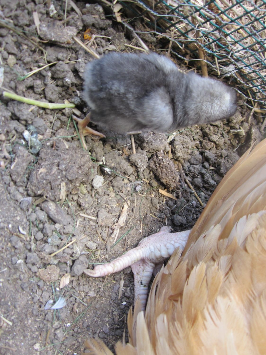 oh and these are the new chicks. Dad was a cuckoo marans and moms were either marans, dominique(thinking the blacker one) or black sex link. Either way they are cute... oh and both were standard sized eggs but the blue baby is smaller than the black one and is 2 days older. Still working on names... my son really wants another Pirate (BF4M has our old pirate) but I dont know a good name, preferably girly to go with it. Otherwise might be Phineas and Ferb. Momma BO is Eggie. ( We have a star wars brood, princess and super heros and a bumblebee from transformers... I let the kids name them!)