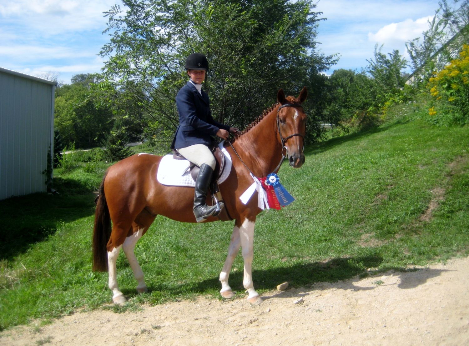 This was his first hunter show. I am glad to be home though, the traffic was not great; there is also something going on in Watertown or somewhere near; our road has been crazy busy tonite! I can hear the music from Milford too...it is "Gator Fest" down at Crawfish Junction--should be able to hear it all night!