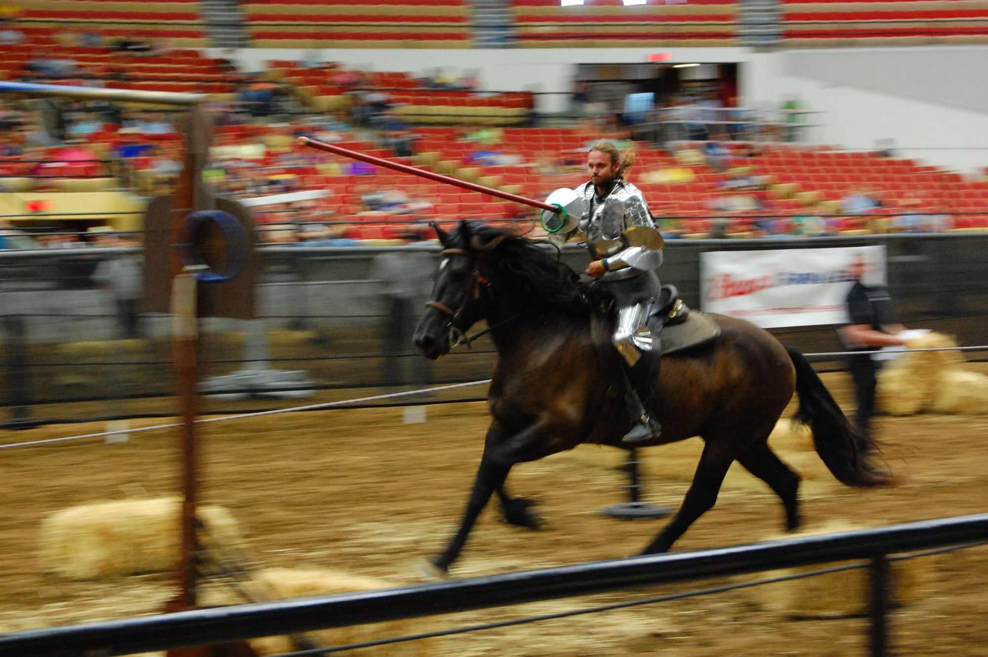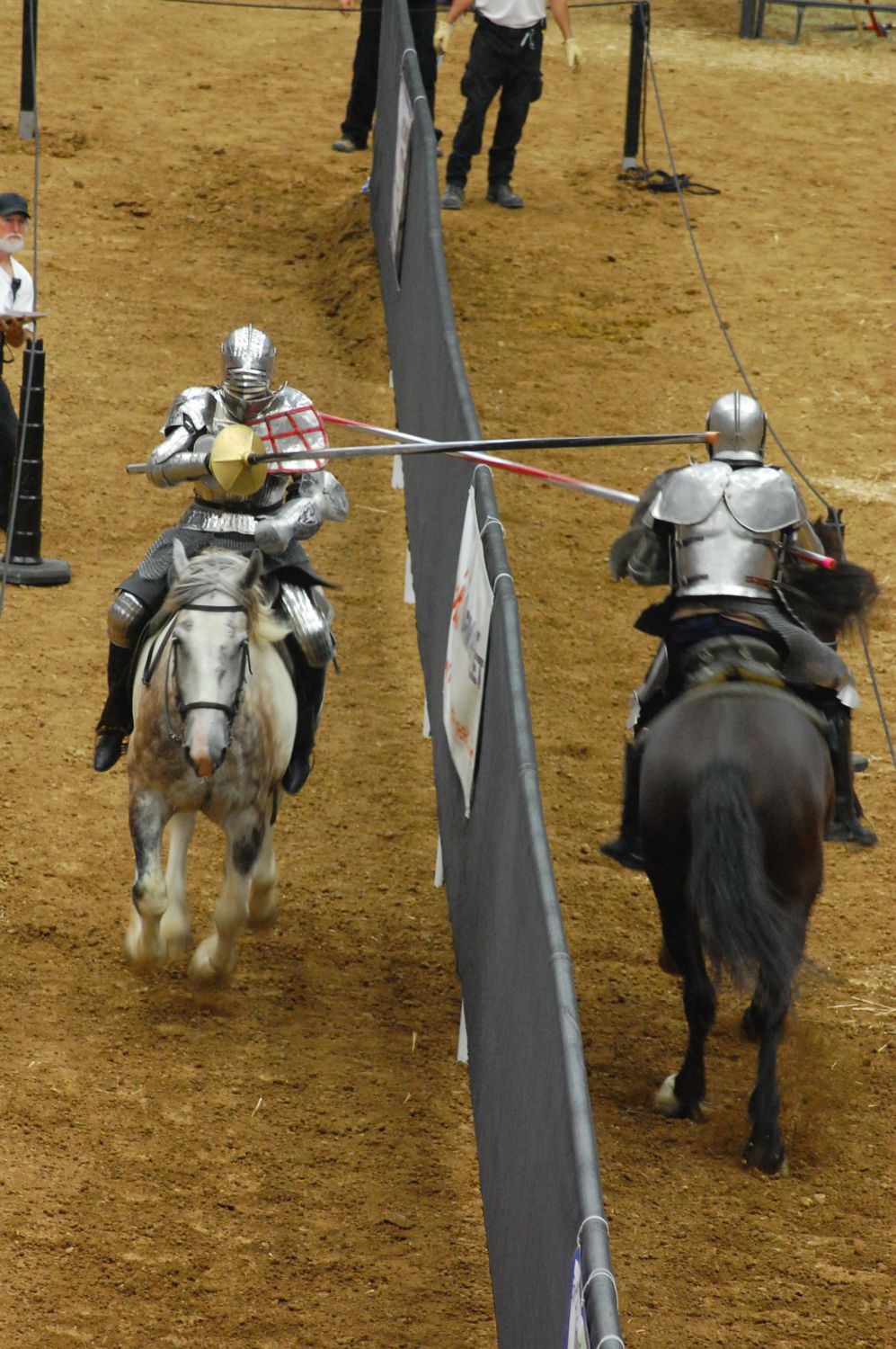 Jousting. I guess these guys have their own show on the history channel. Those are huge draft horses, FT would swoon. Sorry, no kilts, BigFam, just bona fide 150-lb suits of armor.