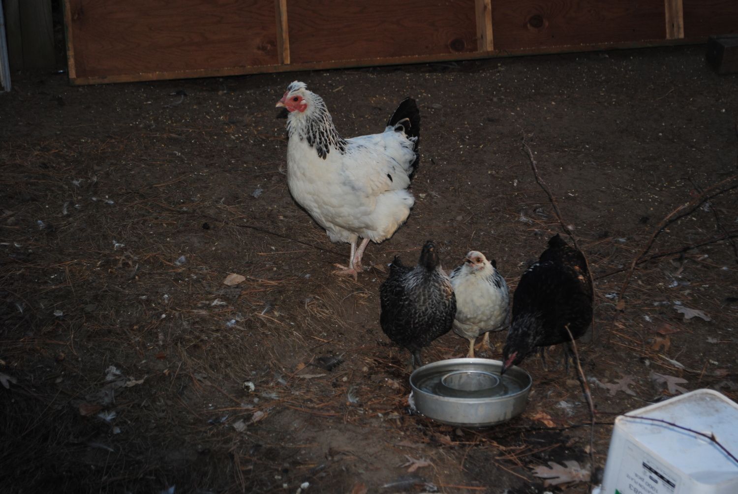 Well, here's the one I kept and I don't know what he is either. Also, pics of my other chickens. The hen at the waterer bred to a rose-comb to have those 3 chicks with her. I was gonna talk more about my actual chickens and possible breeds but I wore myself out talking about dead roos that I really, really, really wish I'da taken pics of. Here's my chickens:
