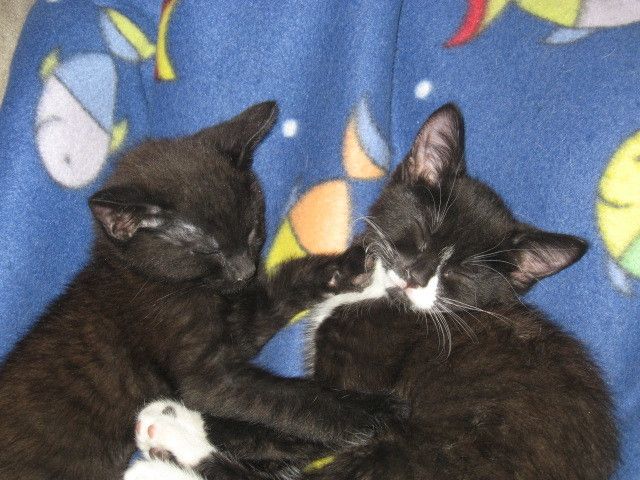 But she's starting to come around. The whole house is now their playground. One would get lost in the kitchen and cry until you called. They don't seem to miss mom at all but their busy. But it was a real treat trying to eat ceral, they could smell the milk. The B/W one is getting better Cindy but still kinda runny. They both are using the cat box now with only a couple of clean ups. So far their Toby and Butters. This morning Toby thought my toes and feet were a definite threat to home land security. Both likin the pettin and purr when content and give kisses. Toby is most assuredly the top dog.