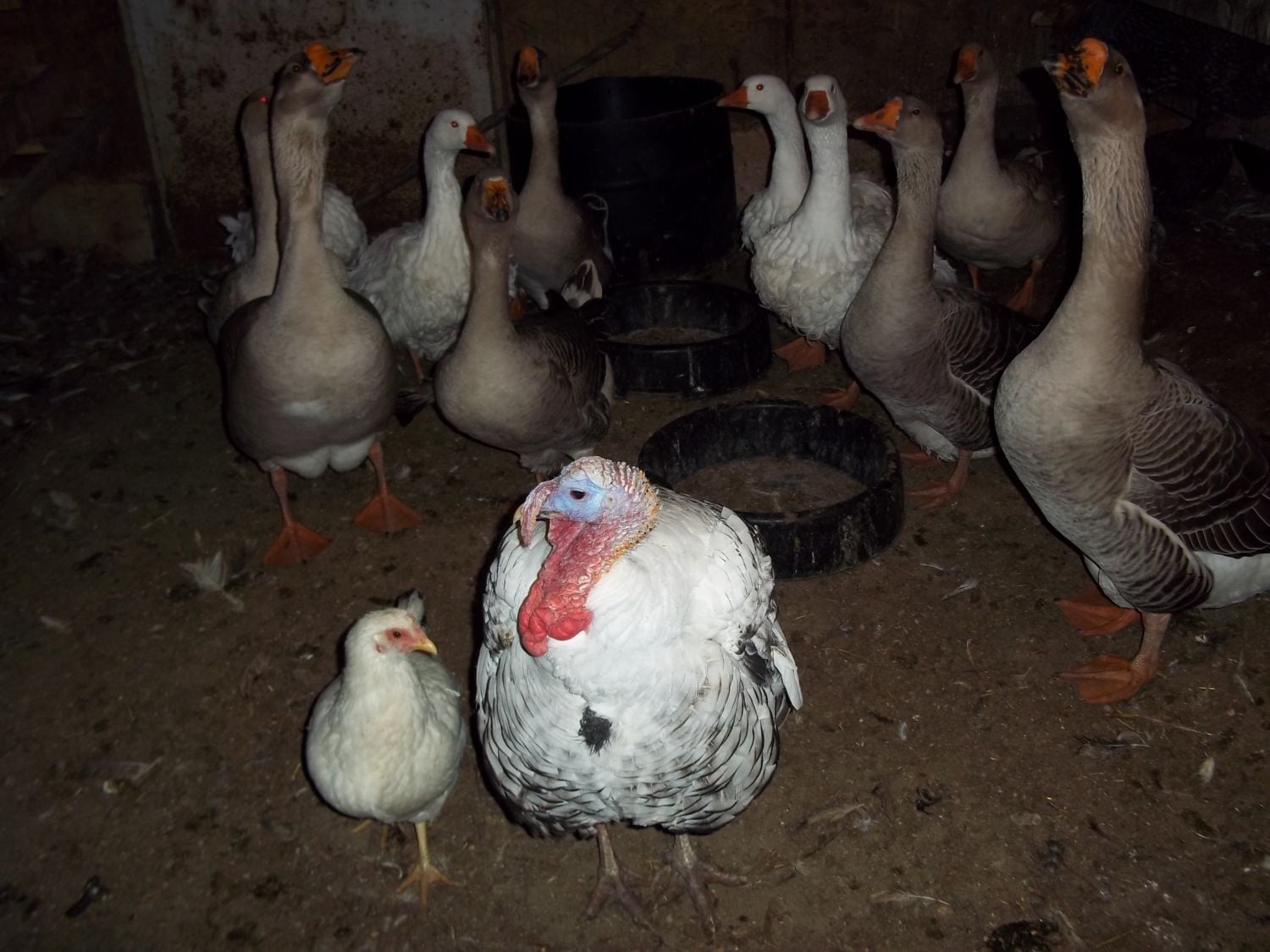 the "floor dwillers" in the main coop.. that is old Tom in the foreground.. the hen is not his girl friend.. she just happened to be walking by..