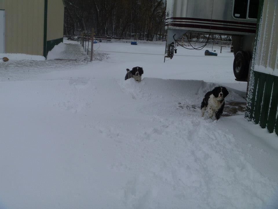 And Here's a Shot of the dogs in a drift(Please note, he is A Springer Spaniel, about 2-1/2 - 3 feet tall, so these are big drifts...):