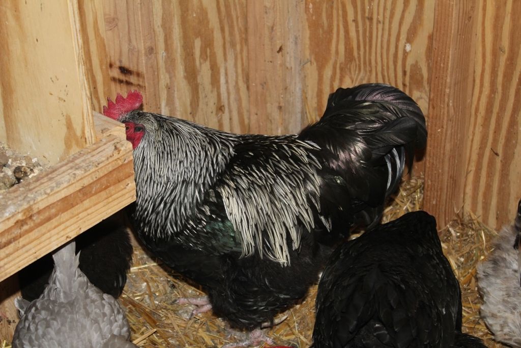 I did try to take a picture of my Iowa Blue when I was getting pictures of other chickens I was listing on Craigslist. Here is one. You can't see his head though. He's 3 years old. And may need a spur trimming soon.
