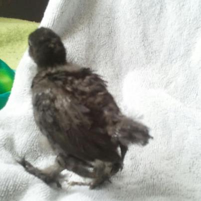 My poor Little Peep looks rough. He's totally pinning out. He seems to be a silkie cross - the feathers are fuzzy after they start opening. So here they are - what do you all think?