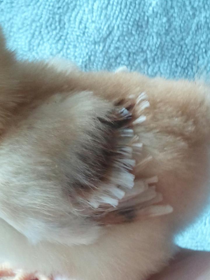 So hey...I'm going to post some more photo's of my chicks. Four of my 16 chicks have some strange feathering going on. They seem "rough" Frizzles? there was a possiblity in the order.