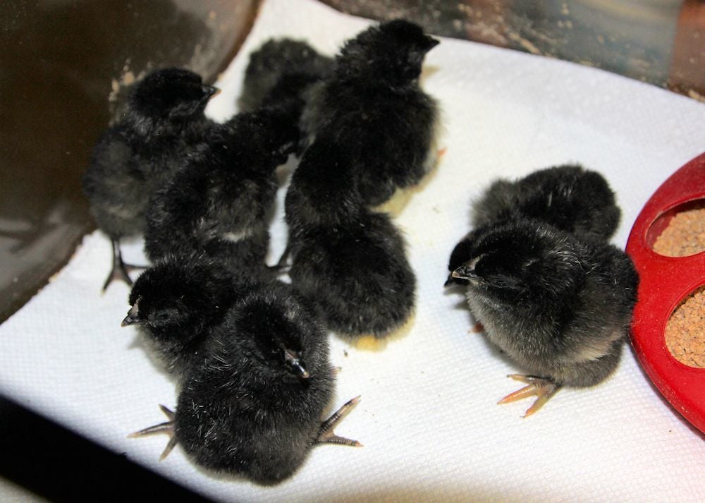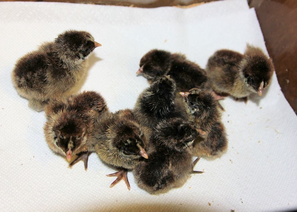 Chicks started hatching yesterday morning, so I snatched out these chicks from the hatcher tonight, 9 birchen, 8 silver penciled Iowa Blues so far. 7 eggs still in there, a couple pipped and active, so I quick closed the hatcher to let the rest of them go on to hatch if able. Love that incubator, right back up to humidity and temp almost instantly. :) If not another one hatches, I'll still be tickled with the hatch. Whoopie! 8 more SPs to grow up and some more birchens with some different genes to cross in to my birchens.