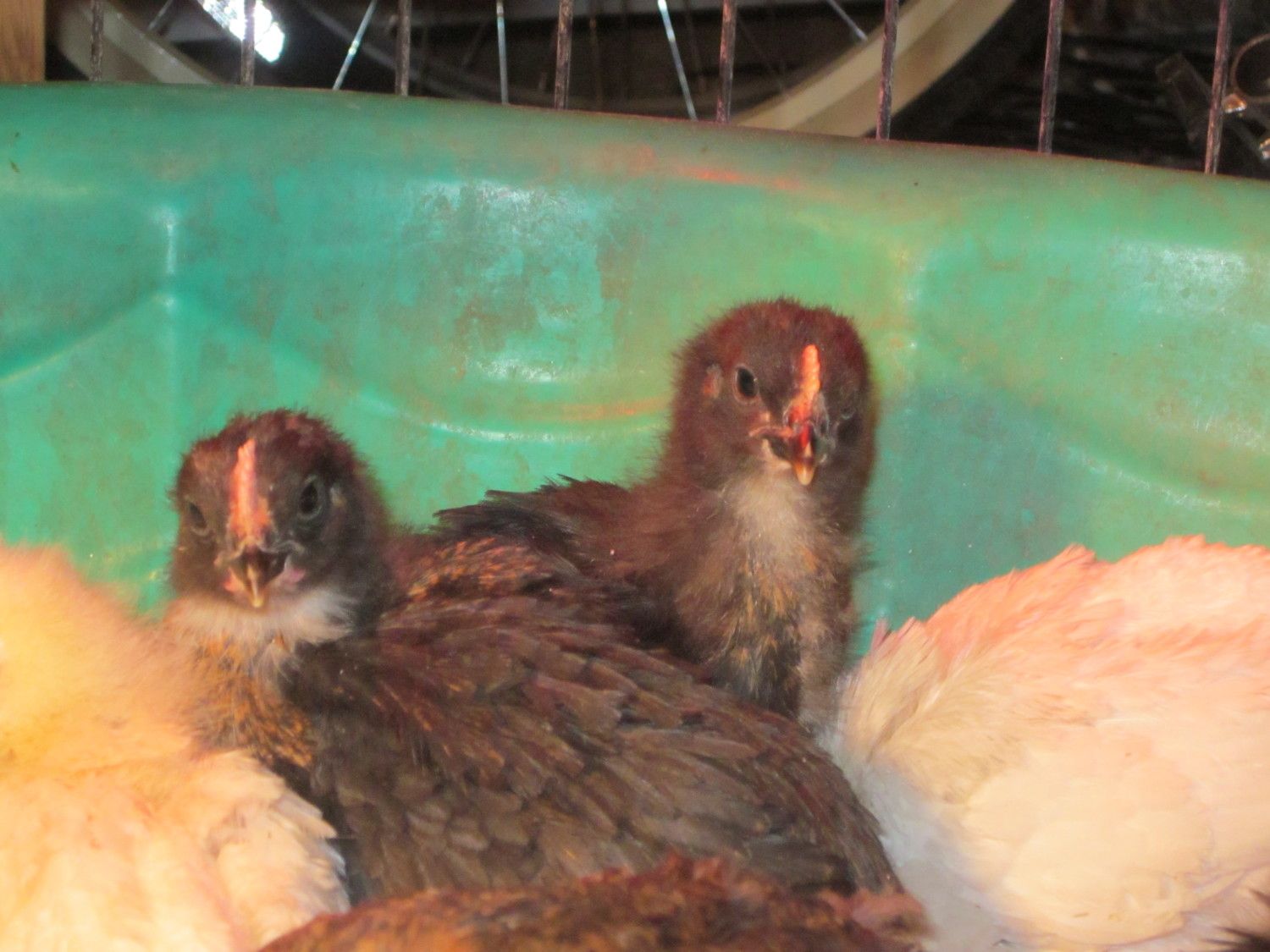 ok...so Deli...what is the roo..lol... rock? Black with little gold leakage on chest..seen here with the BCM roo..not best pic, he is the one on right. Black clean legs. three weeks and these two have red combs...other combs, not as red..waiting... they are so funny. just tried feeding dried mealies for first time. Had dozens in my hand...they kept pecking my hand and not worms. Silly birds.