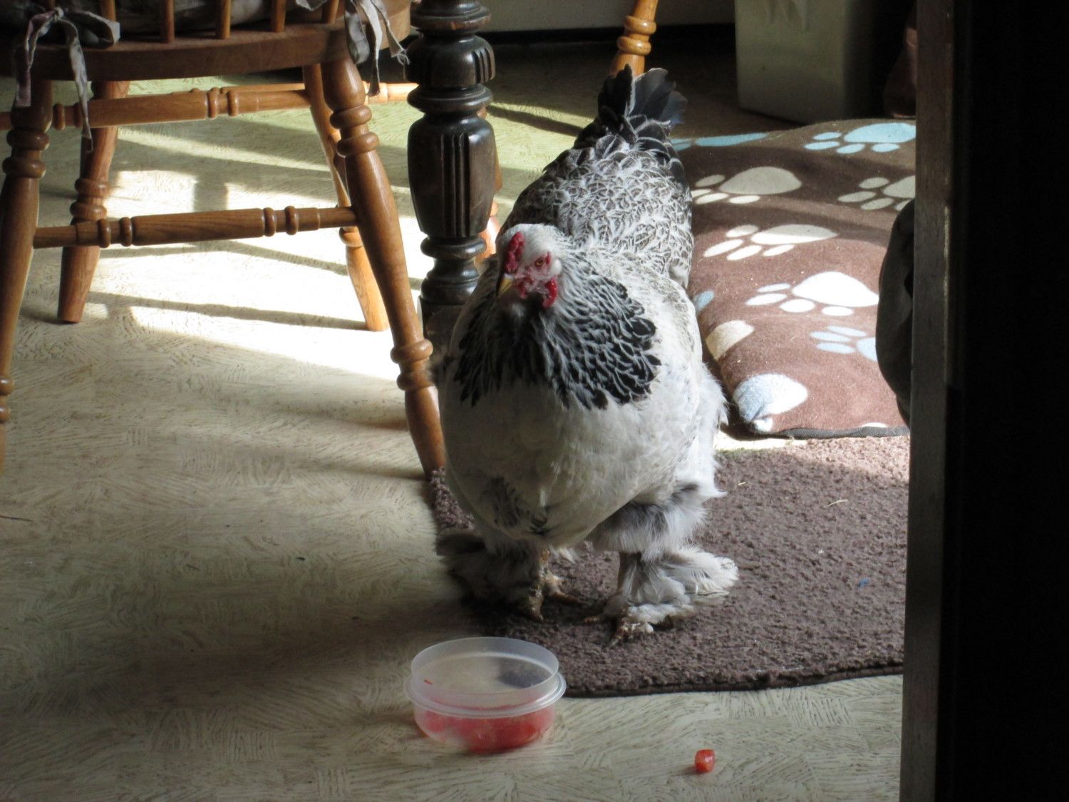 My rooster who is 13weeks and was the sweetest thing and looks just like his daddy and WAS my favorite gave me a good peck on the arm today. I have a big bruise and a nasty mark. Darn thing- I told him to enjoy his time now, because in a few weeks its freezer camp for him. I was even thinking about giving him away because he was soooo sweet I thought someone could really enjoy him. He was so tame because he was my favorite and was held all the time.