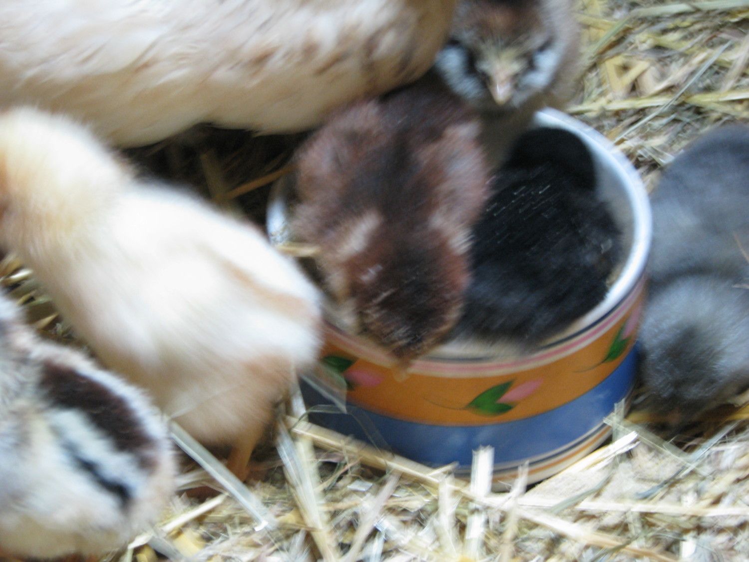 I know I should have shavings in the box, but the other chickens dumped the straw on top of the shavings while she was brooding and I just left it. I think with mom in there they should be OK.