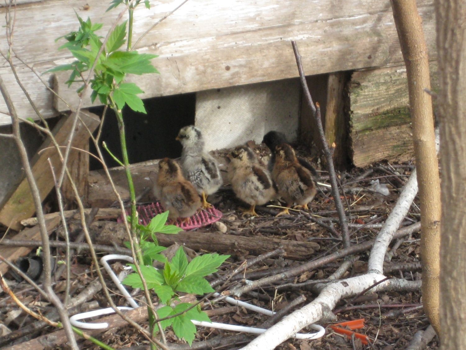 She is trying to get them to go into the cat door in the milk house. It is a 4' drop! I thought there were 4 but she has 5.