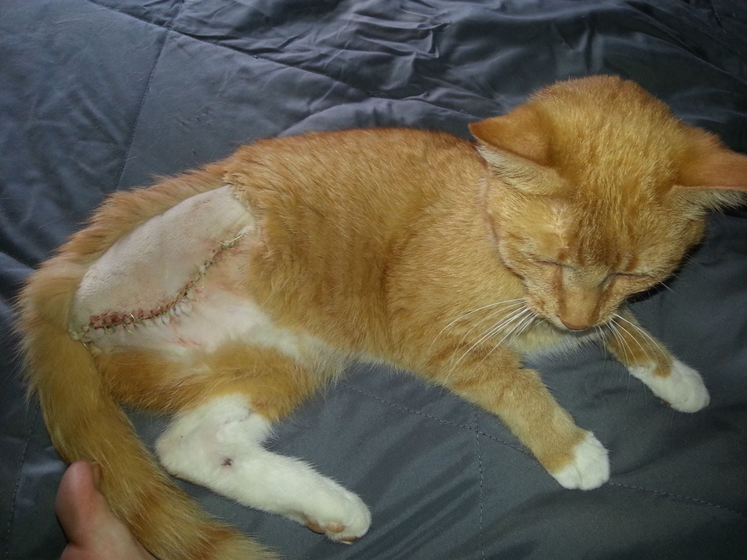 So the vet did an amputation then! They do really well like that, in a few months you will hardly notice that she is a tripod. Was it just the lower leg? The pic looked like the injury was at the hock?