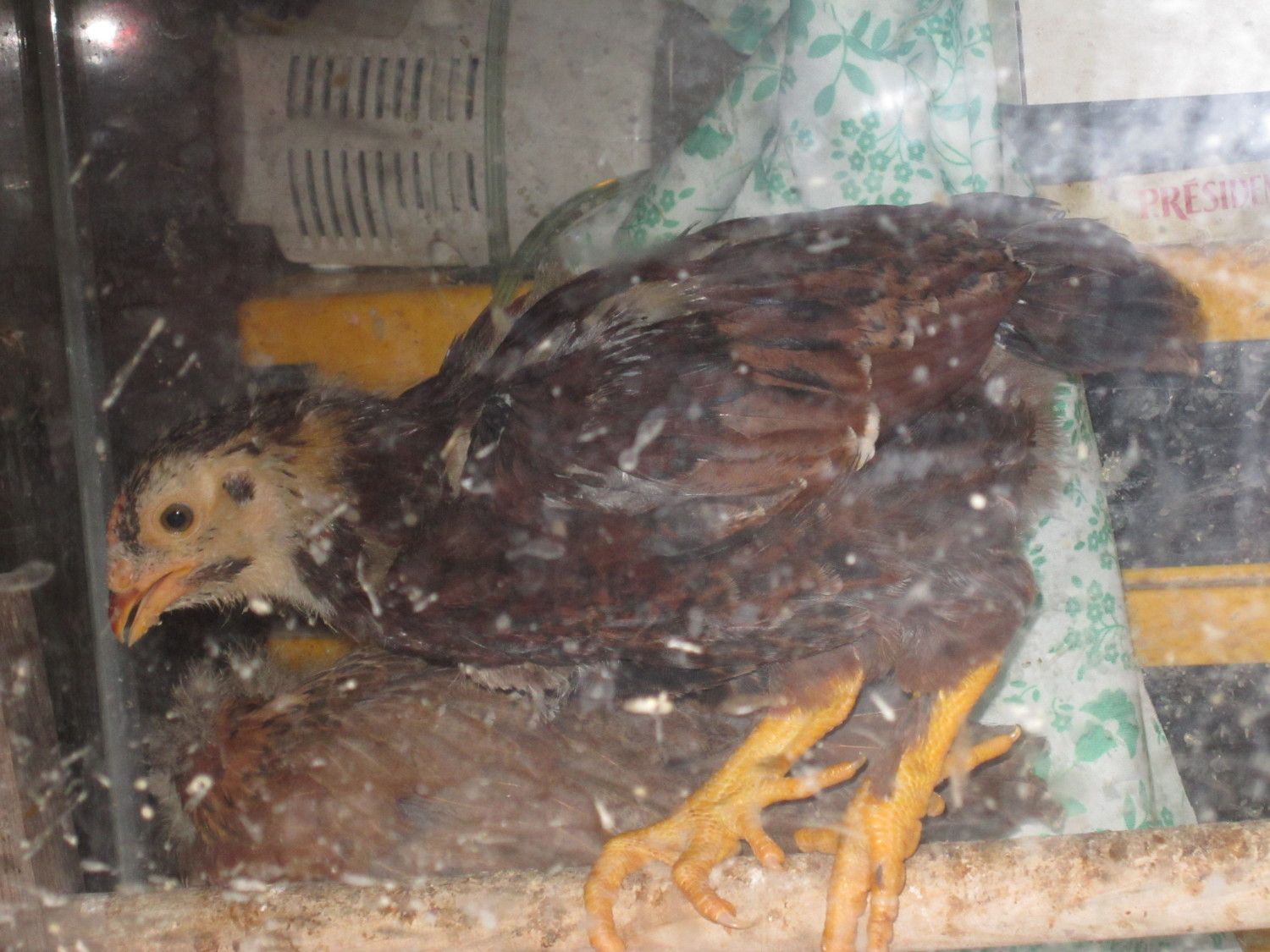 It's hot outside! She is in a horse stall and sitting in a horse feeder, so I am plugging in the stall fan to give her some air movement, lol. Good point though. Hens don't have fans.
