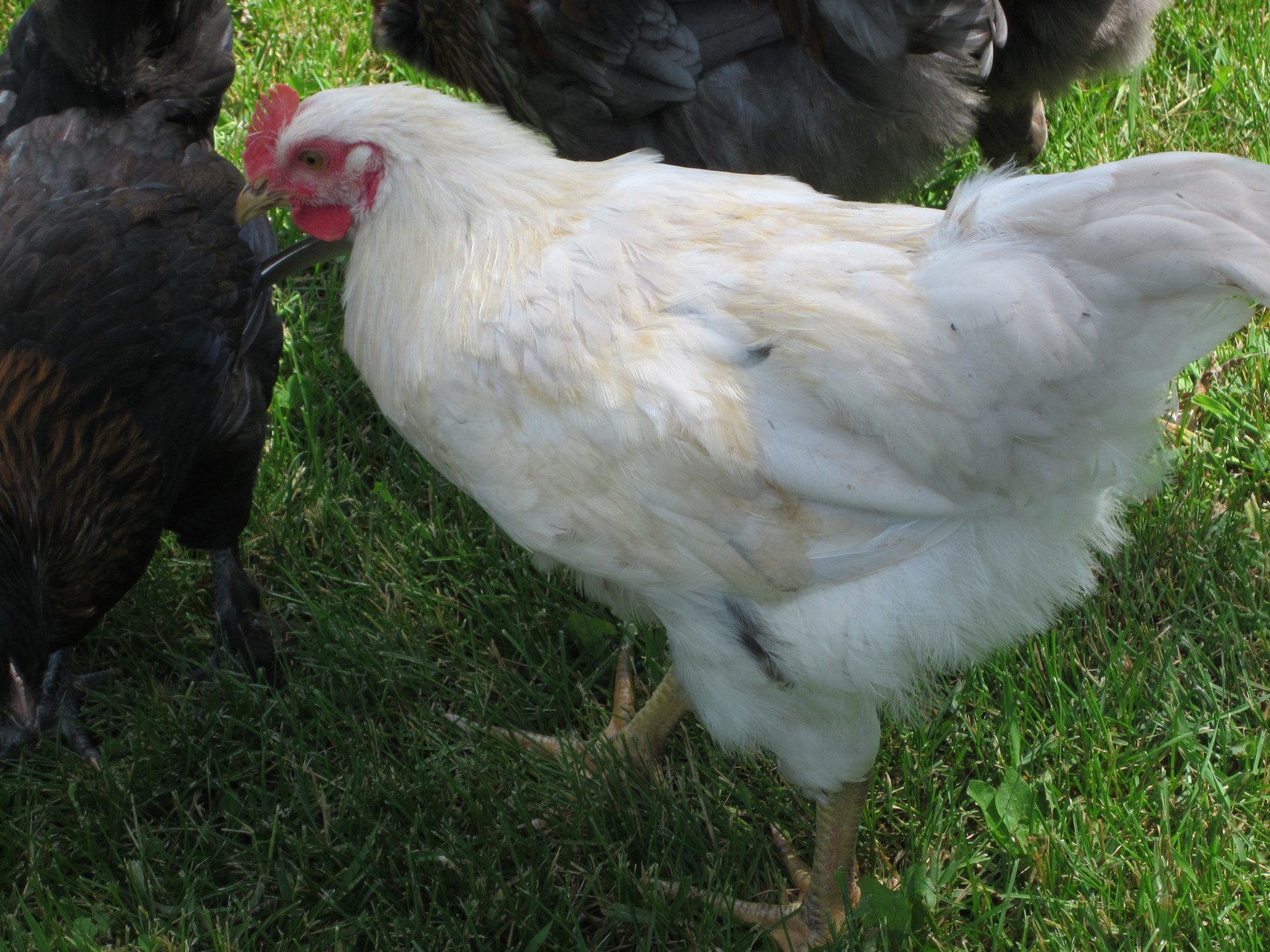 Here are updated pics at age 14 weeks of the two supposed roosters. The white does not have saddle feathers yet but has attitude adn is often caught sparring with the known rooster above. Made a sick pre crow attempt this morning and has the red saddle feathers coming in. Nice bird though. This white one has always been much bigger than the others and very aggressive to other chickens and people. Hackles look rooish, especially when sparring with willow the roo. It wont sit still to get good pictures though