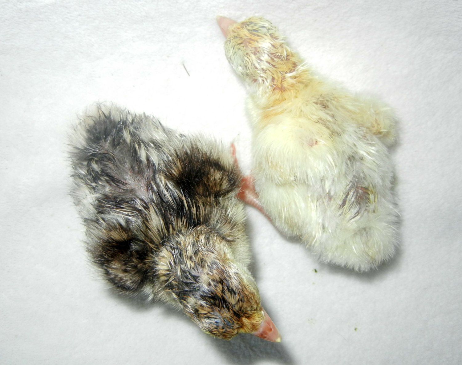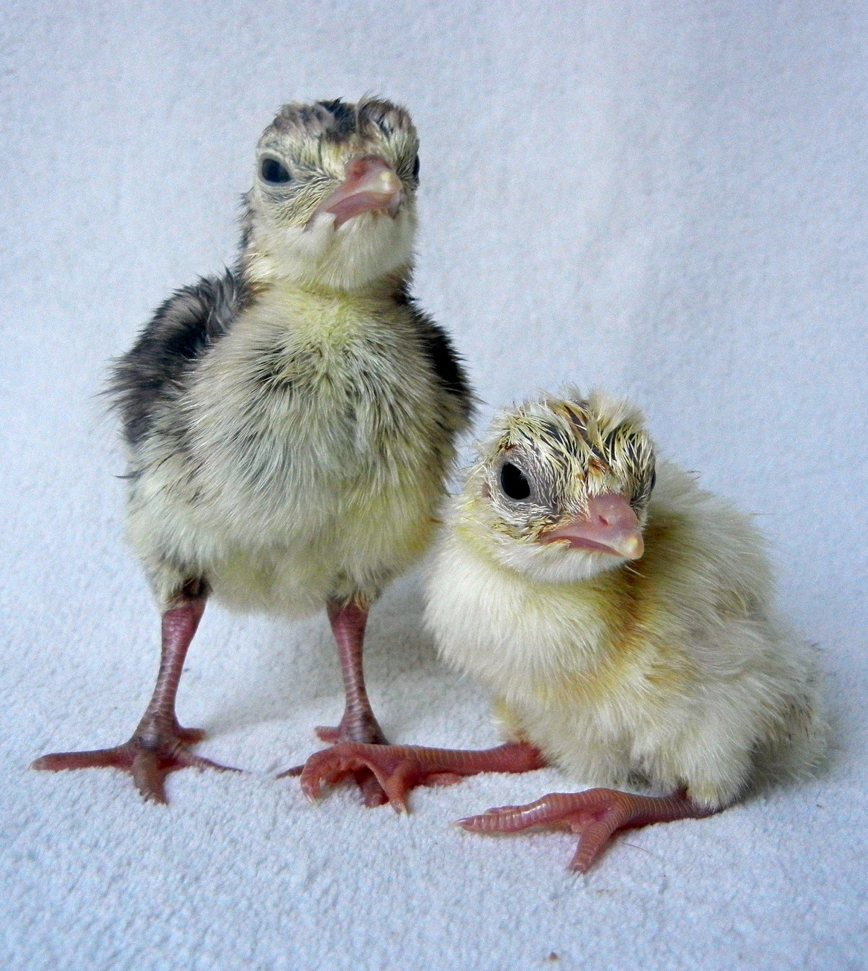 These are the 2 turkeys I hatched last week. They're doing good. Had to put a boot and spraddle on the light one for crooked toes and legs, its almost normal now. I know the yellow one is a Royal Palm, anyone know what the other could be? Both came from eggs marked RP.