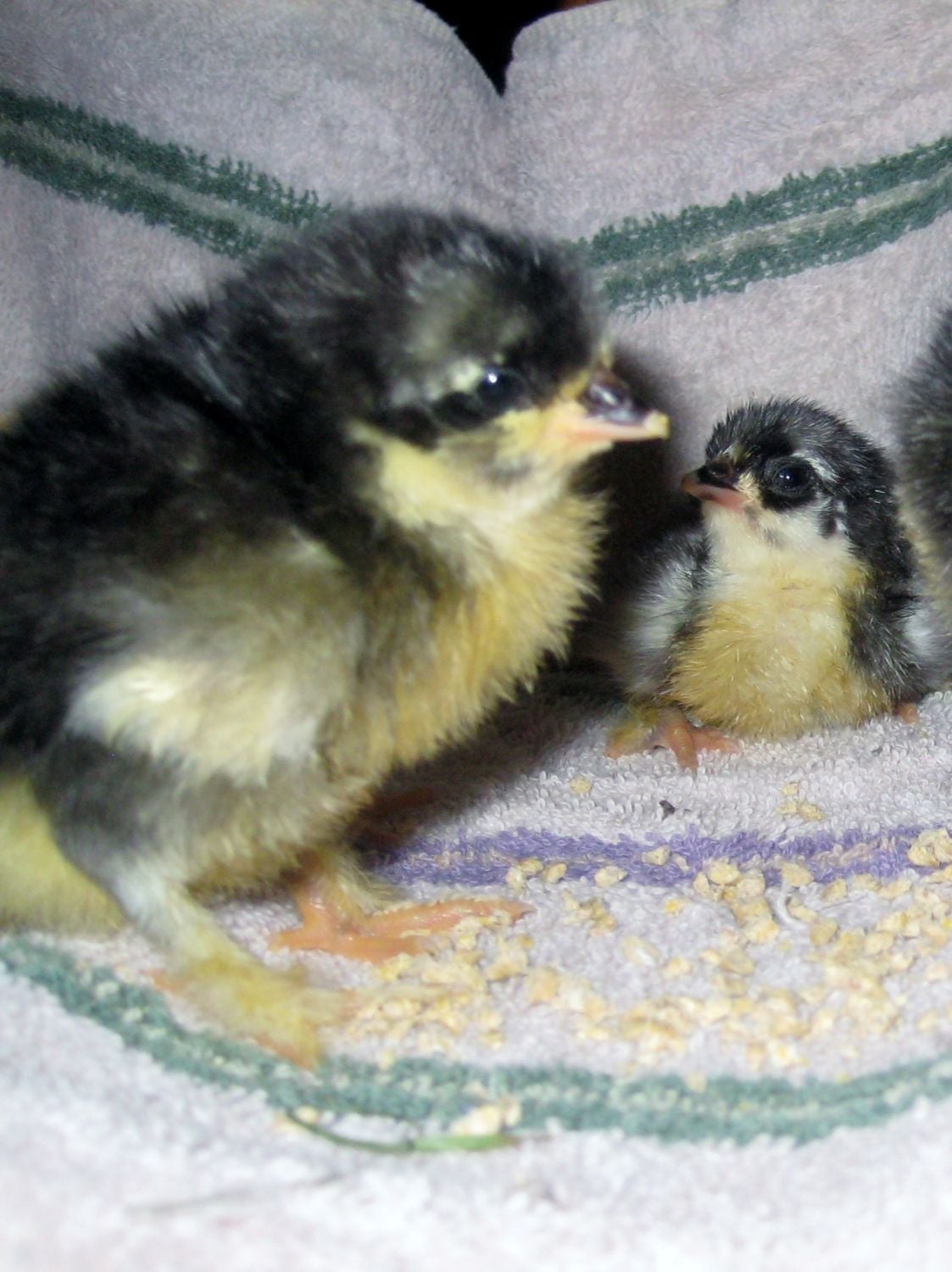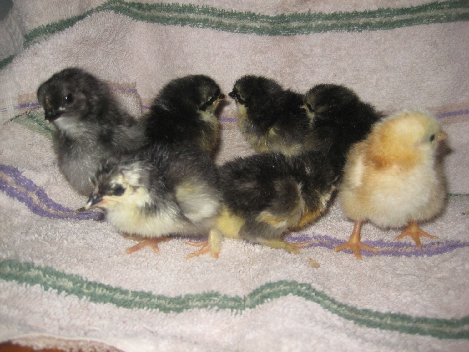 I ended with 5; the black and the yellow on the ends are two that I popped in there to hatch from a nest in the barn. Might be an OE and a buckeye...I cant seem to remember which eggs I put under that hen! I need to carry a pencil and notepad in my pocket at all times I think! I do stuff on the spur of the moment and then of course CRS strikes!