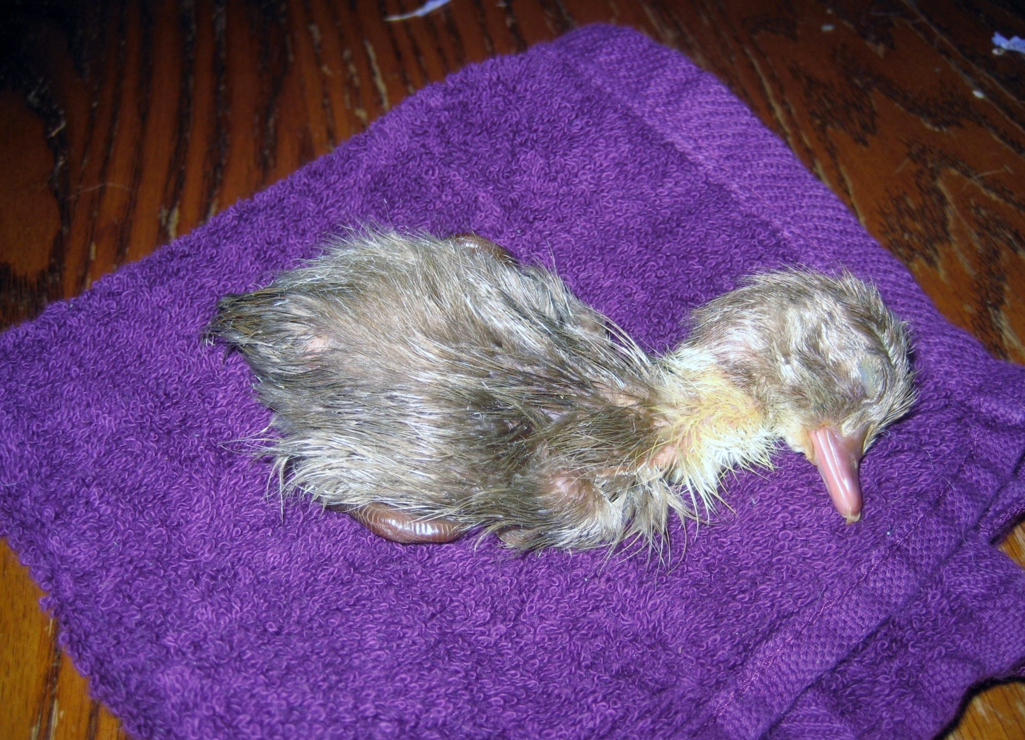 Here is a little duck that was left in the nest yesterday. I think she just forgot that he had to dry still! I brought it in and dried him with the hair dryer. I wasnt sure that it would make it but it was up with the others this morning.