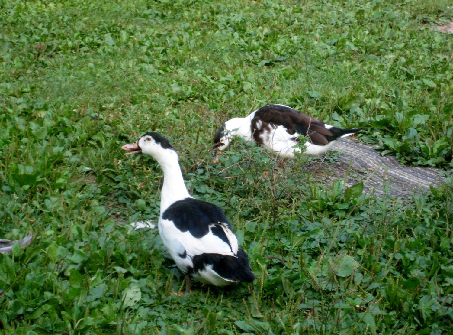 Another shot of that duck and the other one too. One is really black and the other more brownish...They are starting to hang out together...maybe I do have a new breed going? Names! Names!