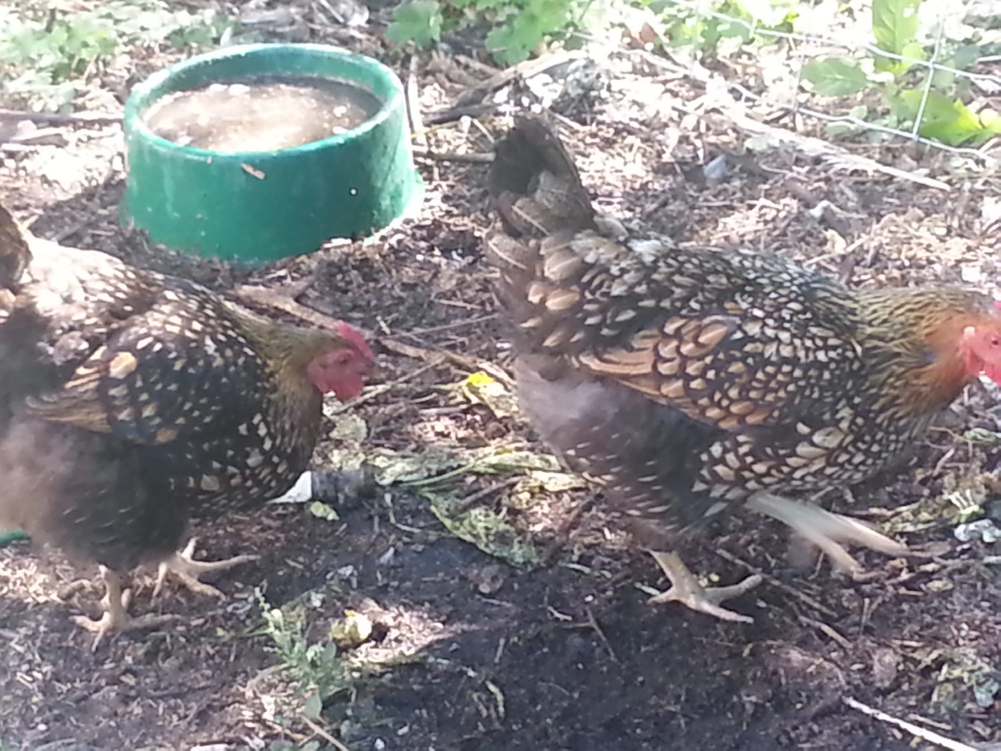 Teenage chickens hanging out. The hens will be staying to replace some of my older layers.