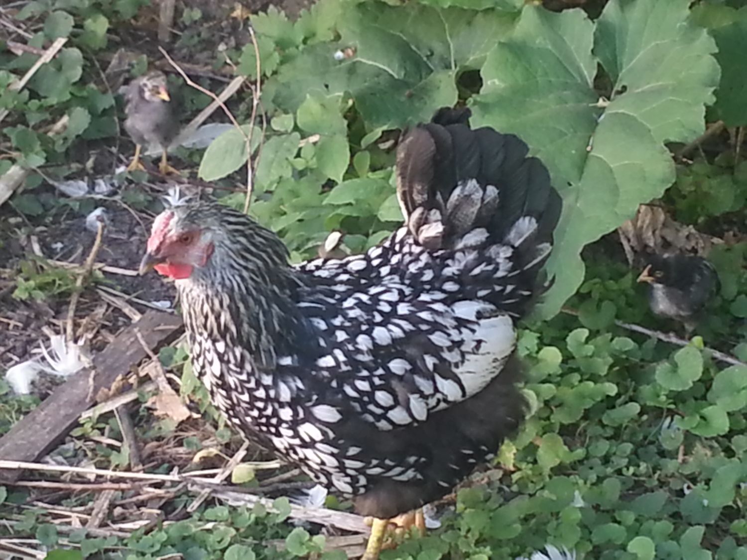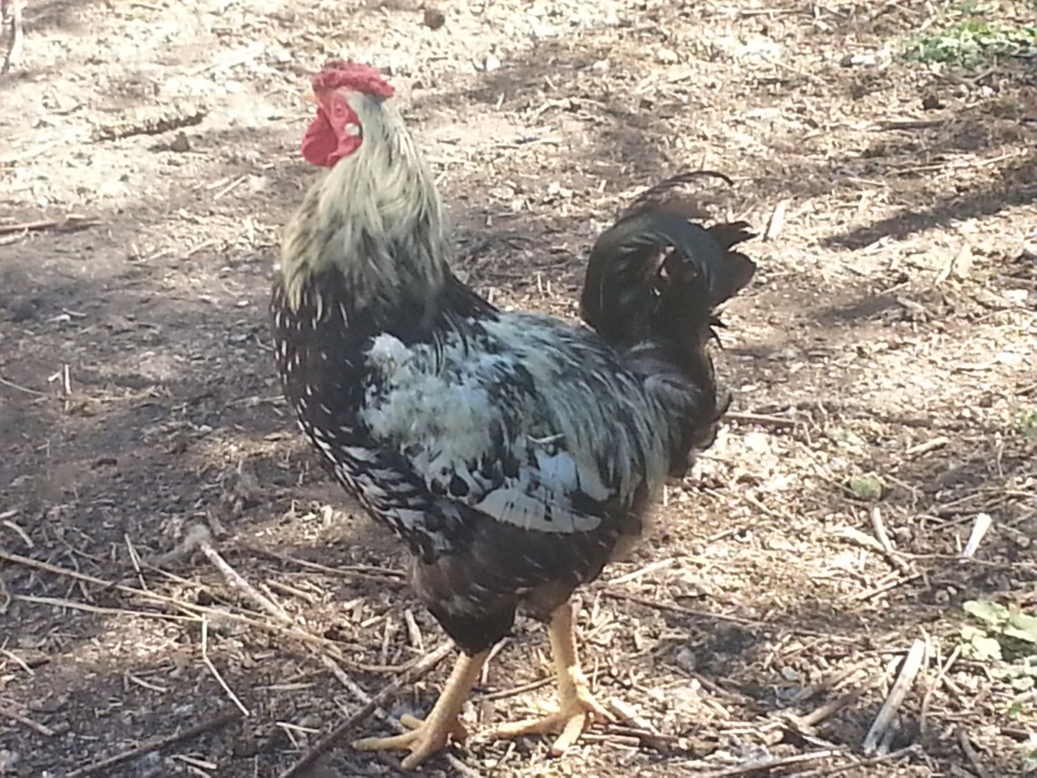 My secondary Roo- a 3/4 GLW and 1/4 Cuckoo Maran- looks like a sliver laced wyandotte.