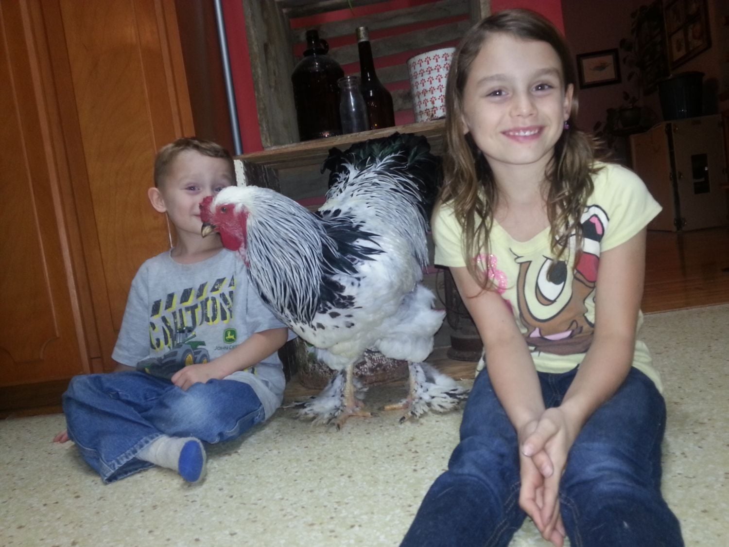 And on a sad note, the little frizzle bantam cochin I had, then gave to Kristi.. sat on eggs for MONTHS alongside the silkie... She finally got off, and within 2 days passed away. We are going to name the baby "Frosts Legacy"