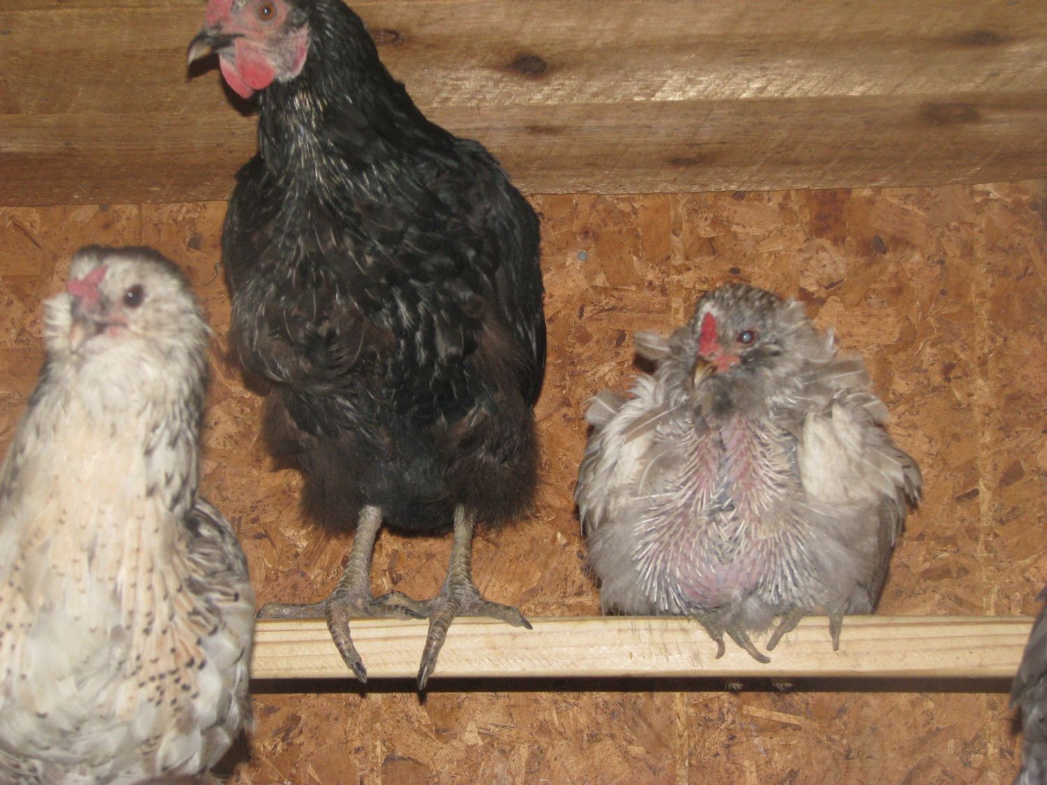 Hi, here's my 3 molty girls.... nice of them to sit together for me! coming in..........almost in..............ewwww! LOL Her (the black) back is still a bit rough, you can kinda tell the new feathers. The darker one got out of range when she realized I was taking pics! LOL