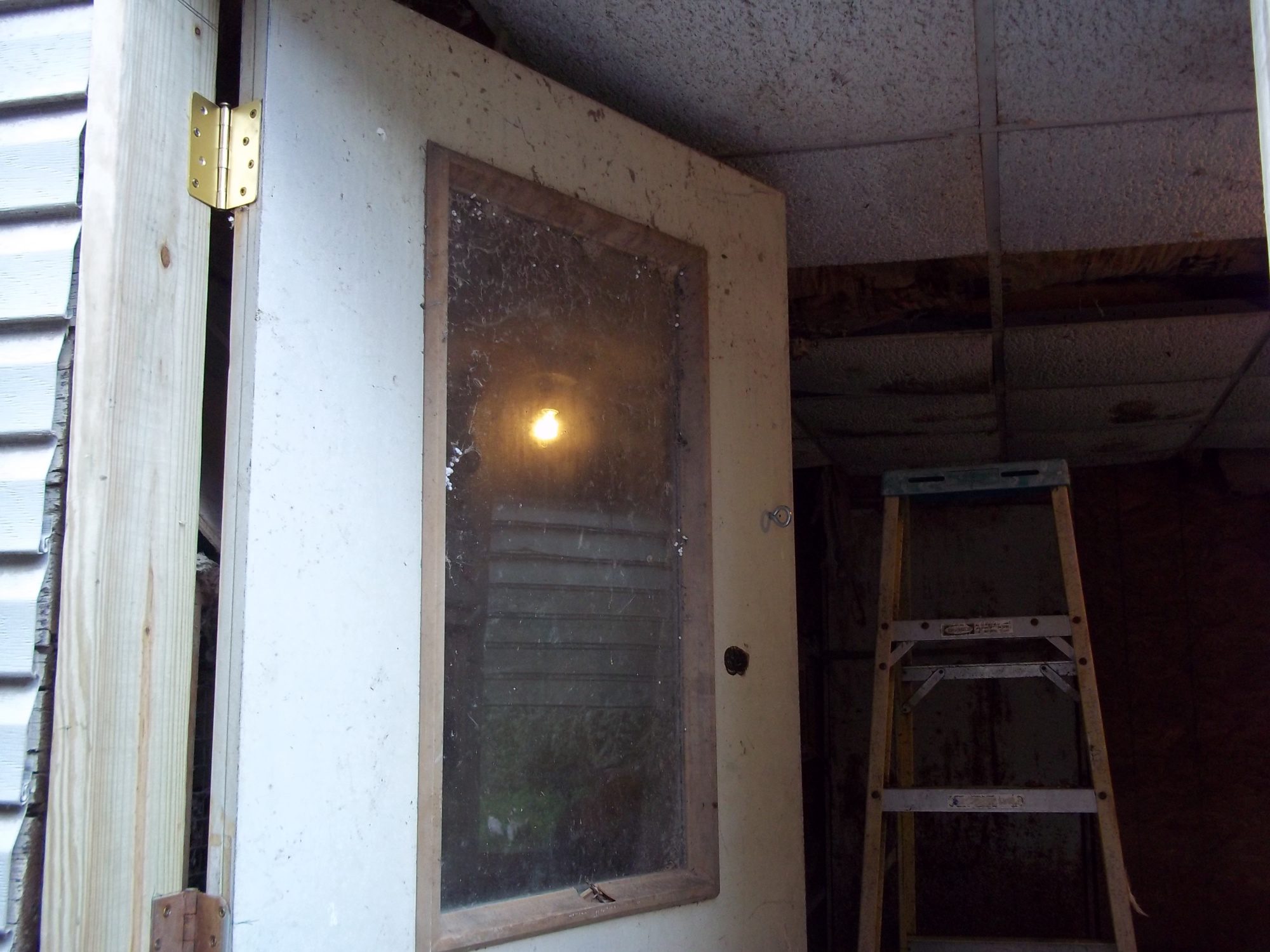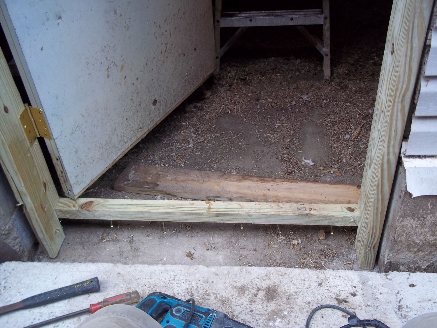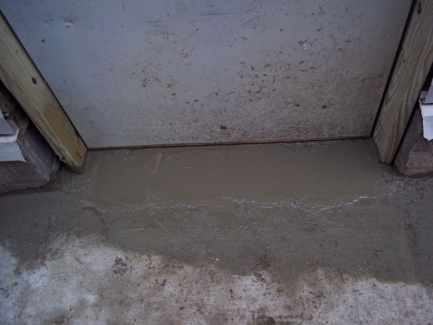 the jamb is secure, the door is hung,, tomorrow the concrete will be poured for the sill