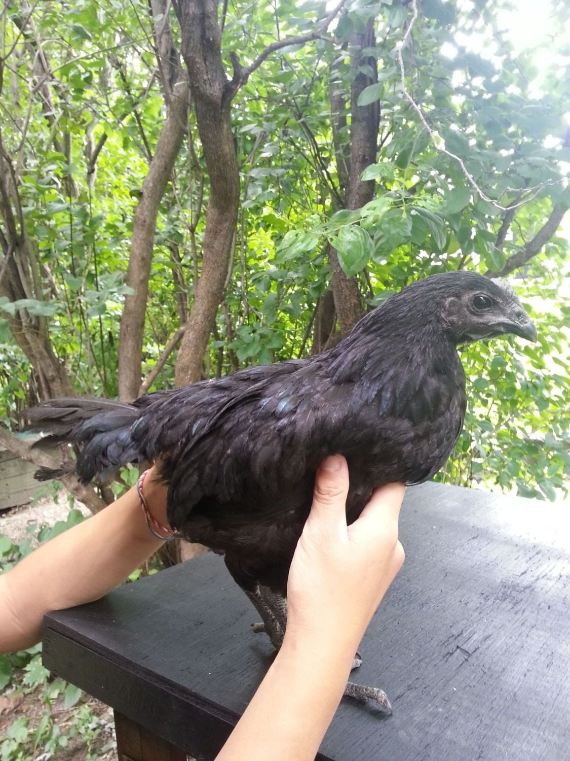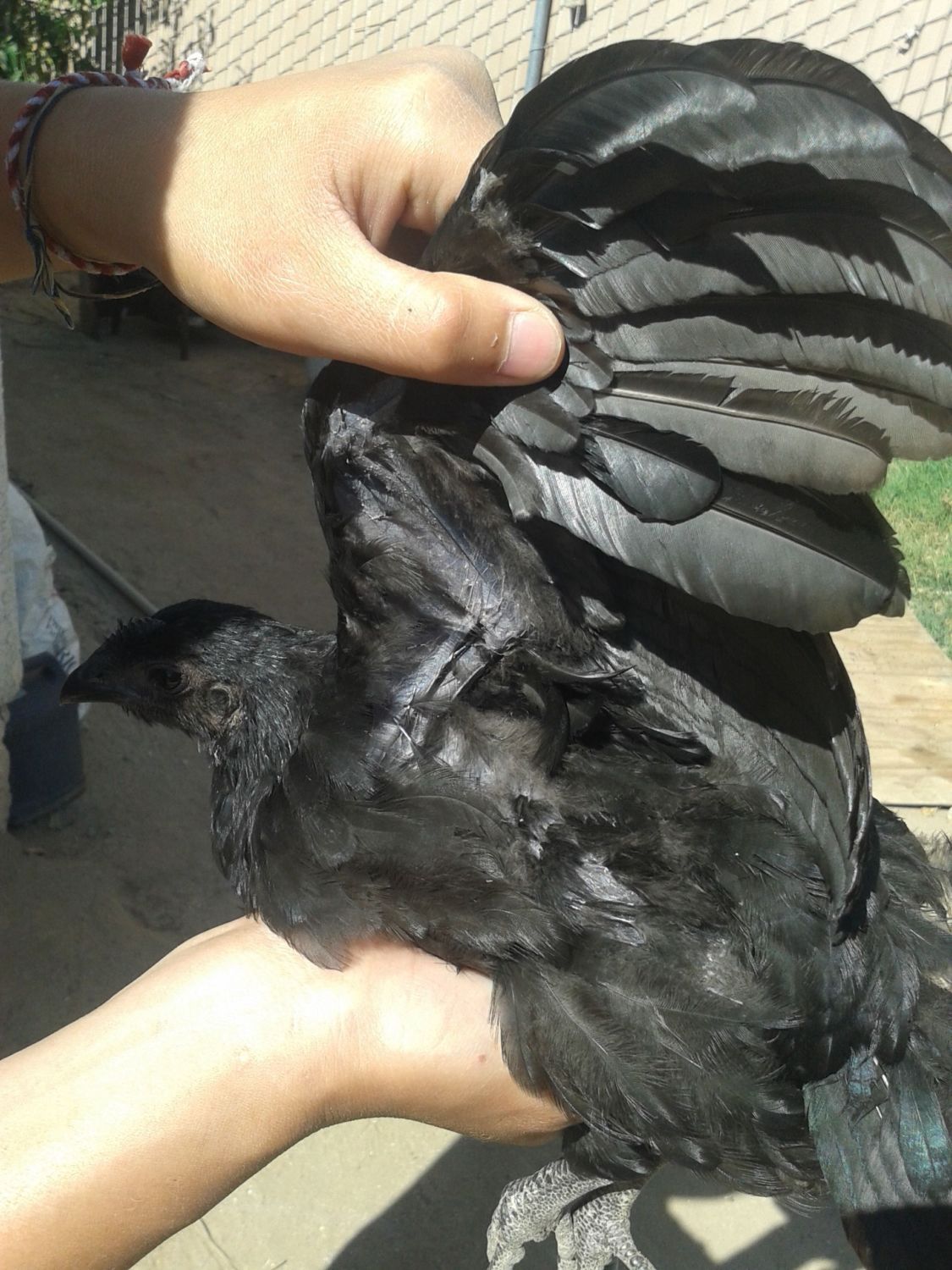 I've brought along three(2 females & 1 roo) of my started 4-5 month old Fibro melanistic chickens with me here from Cali. I currently reside in Milwaukee, the city is nice it self and all the neighbors for the most part(the neighbor next door called neighborhood watch on us because of our chickens