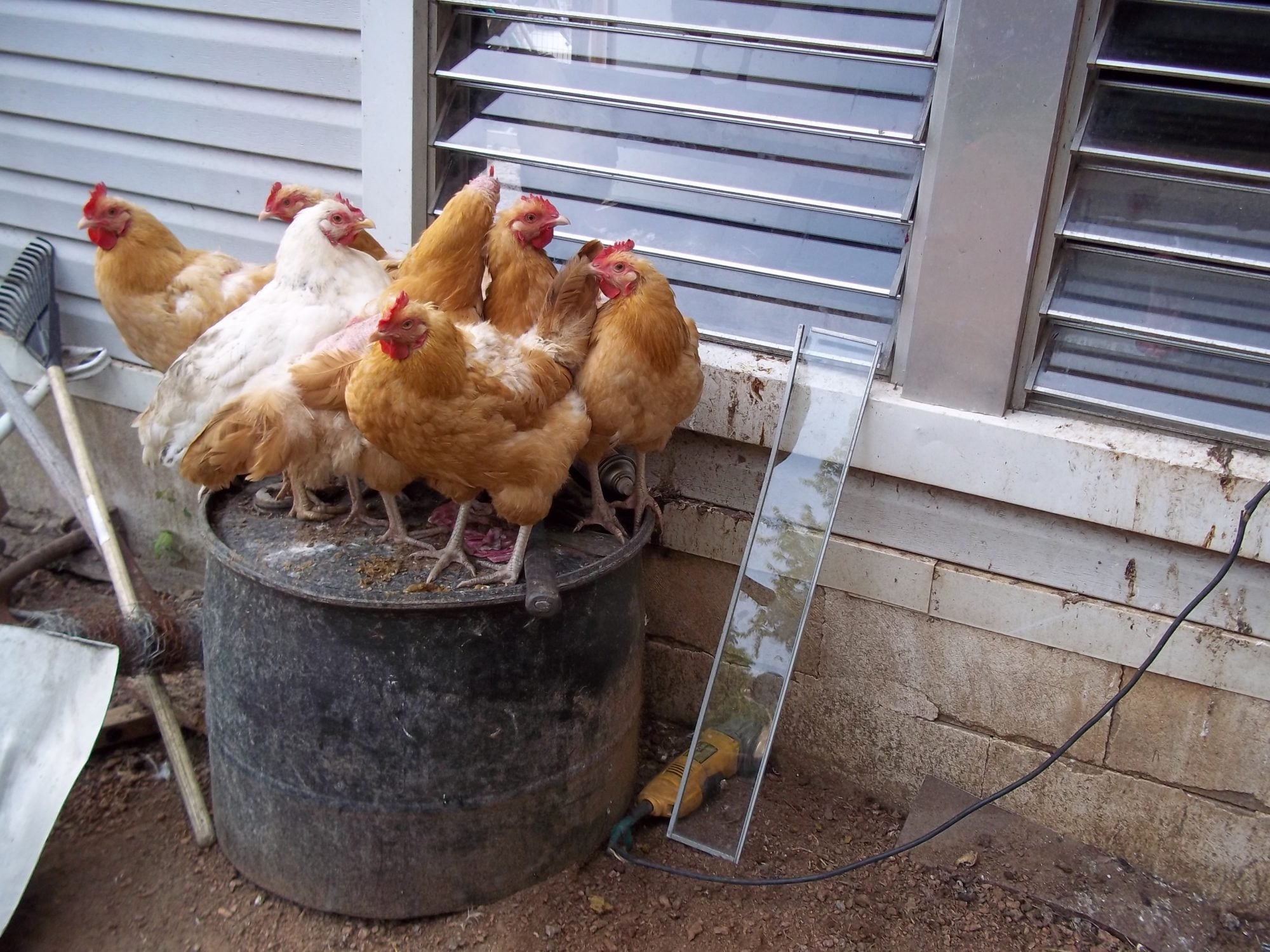 Cuties: Meal worms are also a good source of protein. They're very expensive to buy, but easy to grow. I would be careful about the dried meal worms - most all of them come from abroad and since what's digested goes into the eggs we eat . . .IMO. We've also been throwing the weeds we've been pulling (bumper crop this year) into the chicken run. It's more greens and sometimes they'll find a grub or two in the batch. And don't forget watermelon rind our's love it. In fact Rod gave them an entire melon the other day - whoa talk about a feeding frenzy!![]()