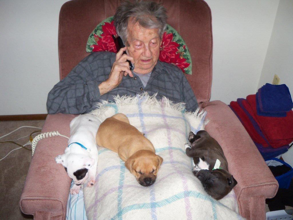 Here is a pic of one of my clients with some of the puppies I am fostering right now.