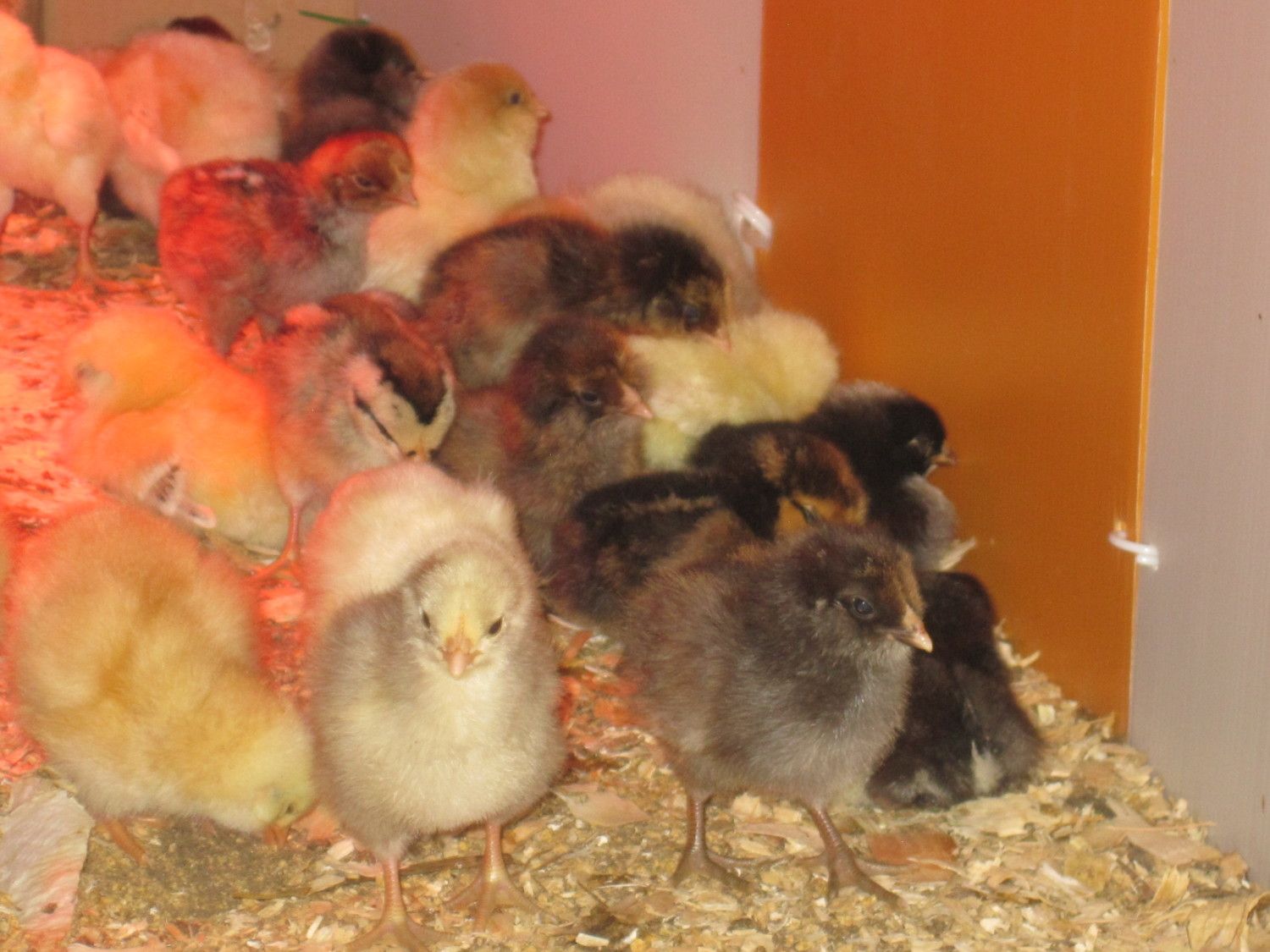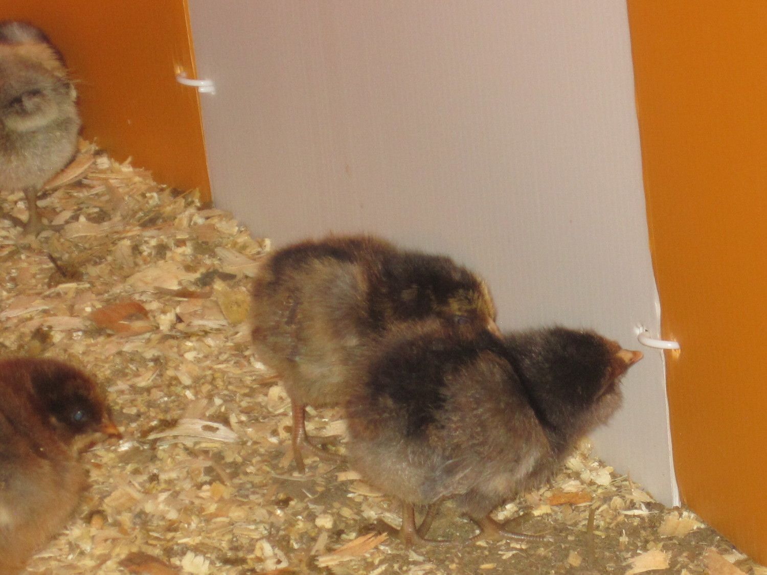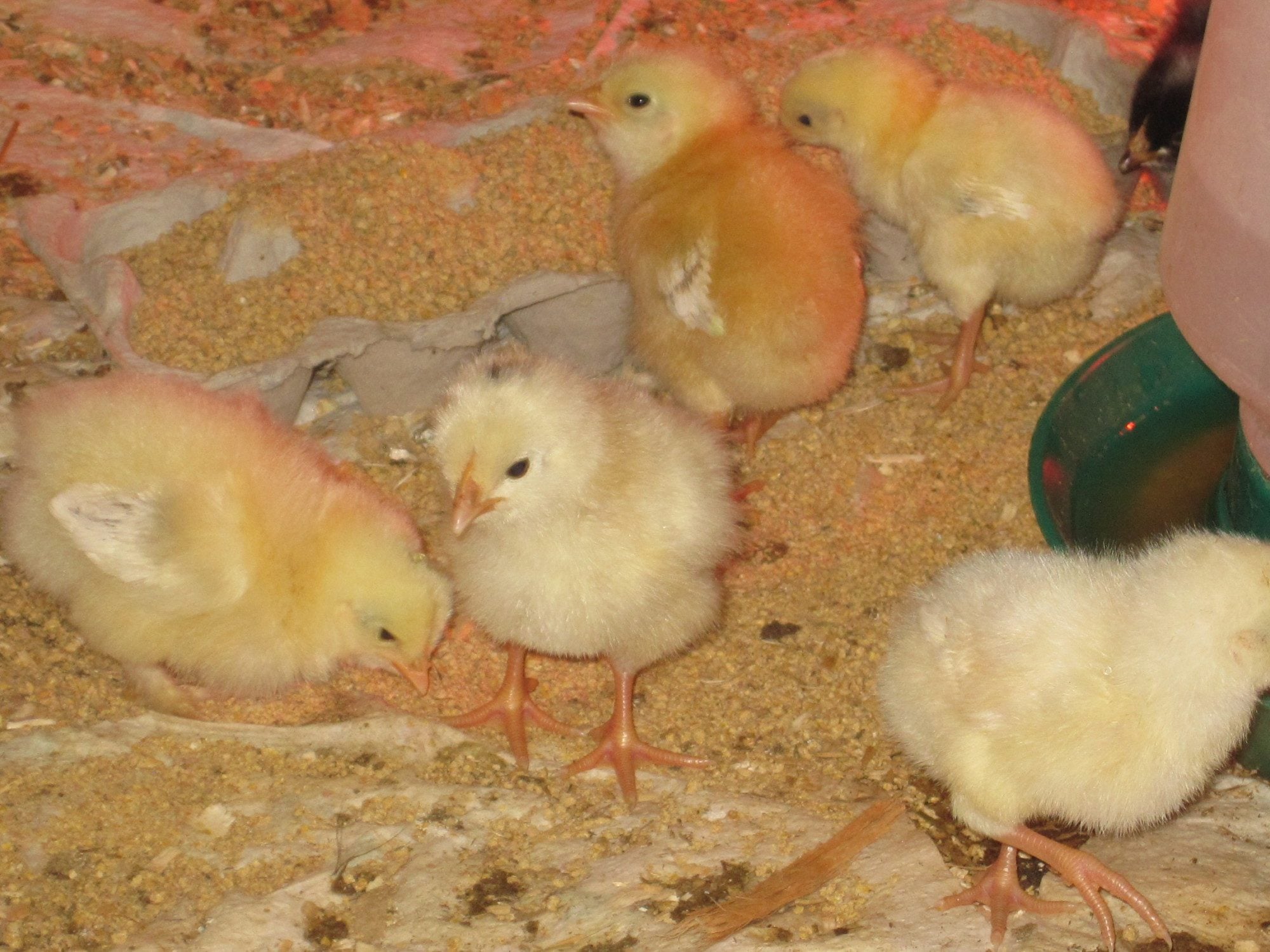 The fuzzy legged chicks could be cochins or Brahmas I think.
