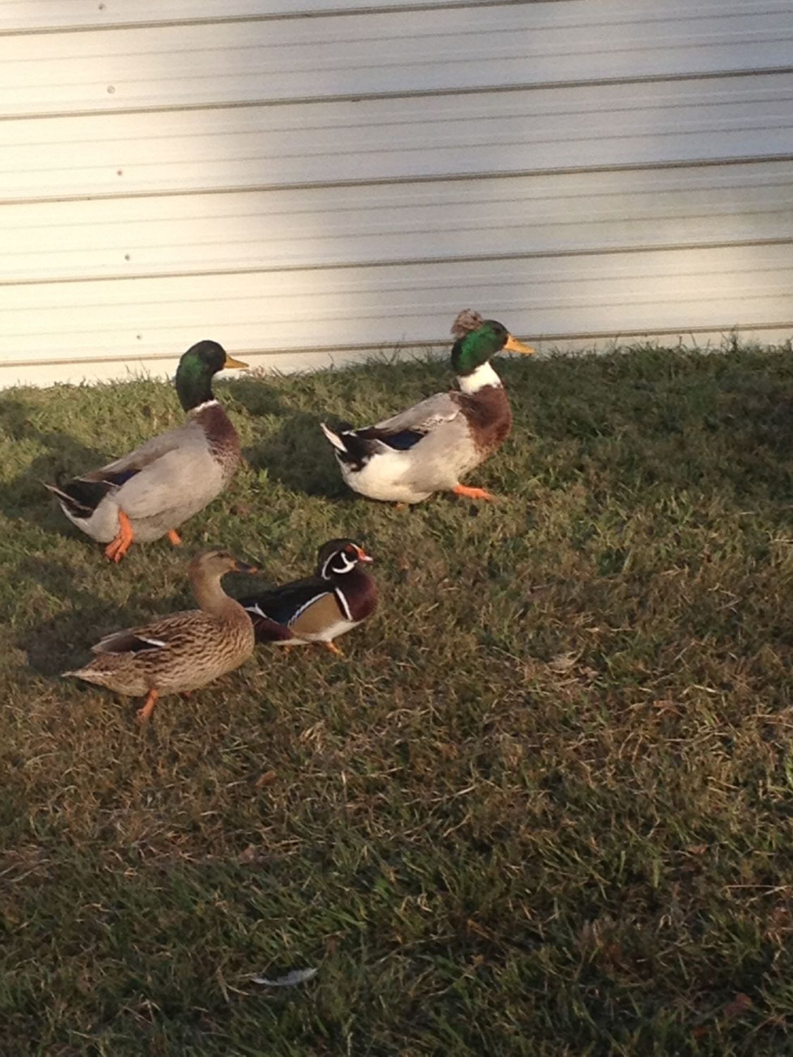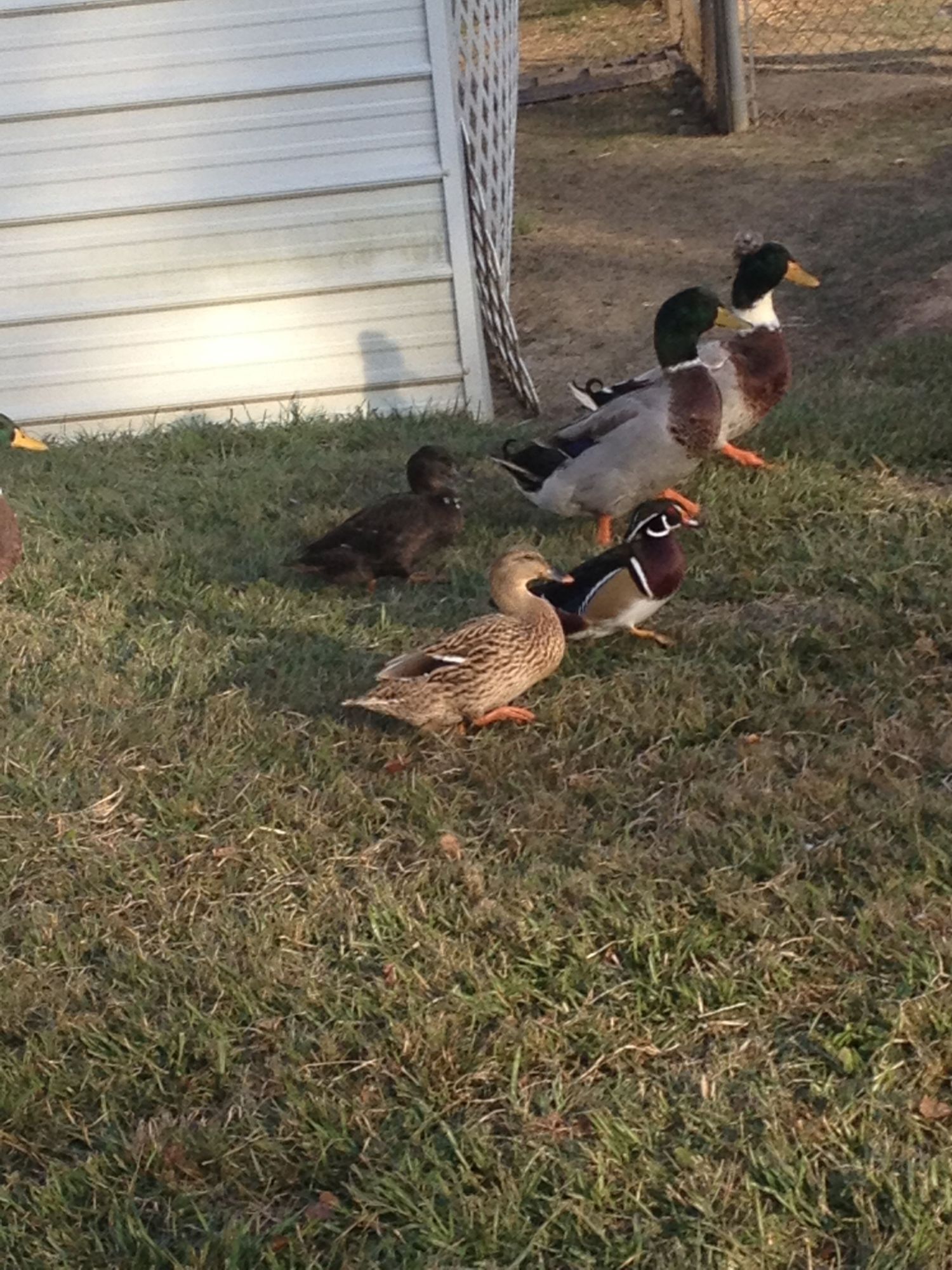 I have a wood duck named squeakers and he just hangs out with my mallards . He actually flew in a while back, I'm guessing from a farm or something since the first day he came right up and laid about 4 feet away from me. Anyway he is funny and just really wierd since he tends to prefer female mallards to mate with over his own kind. I'll try to get some pictures of him tomorrow.