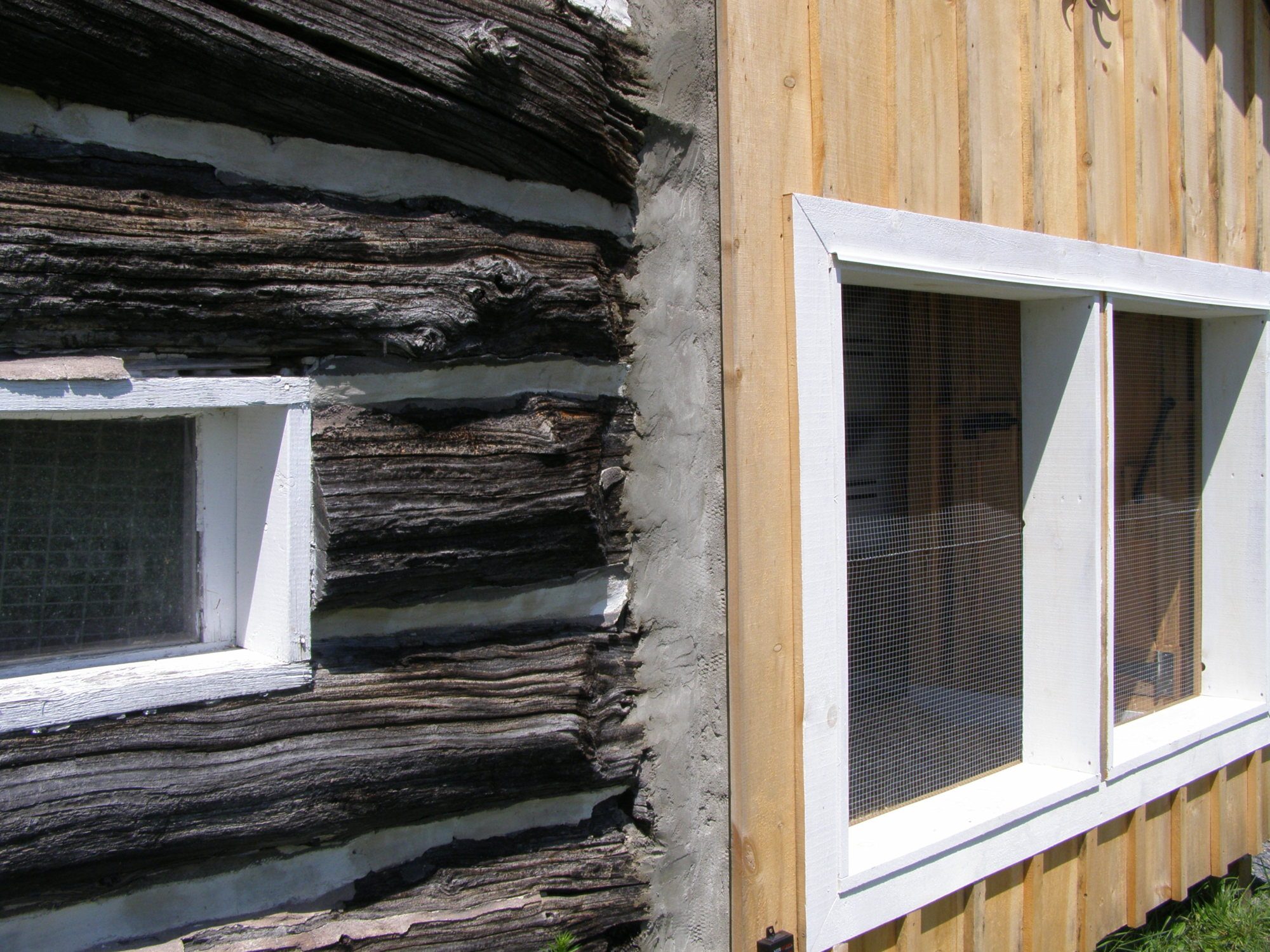 ...and diamond mesh and parging mix are not expensive. You have just got to be sure to wear gloves when cutting and working the mesh as it has sharp edges. Mixing and applying the parging is pretty easy once you get the hang of it. I will be using the same method to re-chink the whole barn eventually. (The wooden box on the wall preexisted and contains an electrical outlet...a bonus!