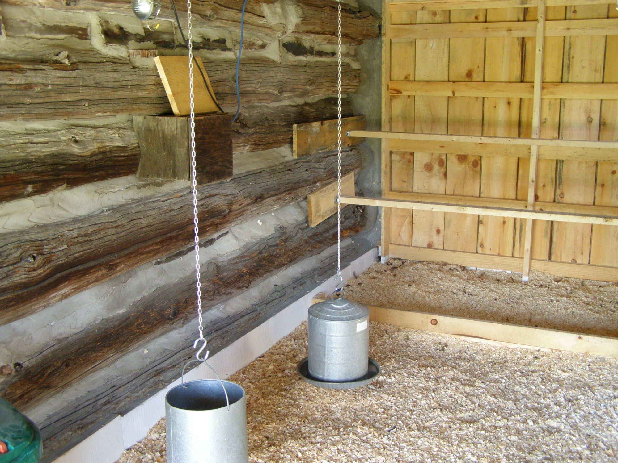 Greetings. Here is a picture of my recently completed interpretation of the "fresh air poultry house" incorporated into the tractor port of my old log barn. Open front faces very slightly south/east. I read Wood's book and looked at JackE's very impressive coop on this site to get ideas. It is built out of rough cut lumber from a local mill. Measures 8'x18'. It get's very cold here in eastern Ontario in the winter, but I am confident from what I have read that this should work out very well. I will have to resist the temptation of placing a heat lamp over the roosts in January. :)