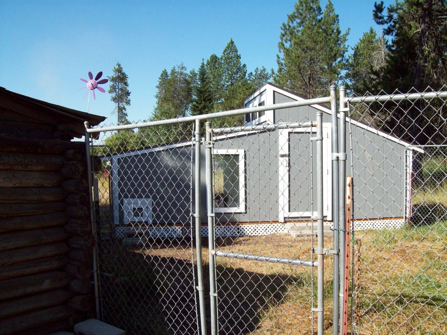 Is that 6' or 8' chain link? I have been thinking same thing for around mine when I don't want to let them free roam all over.