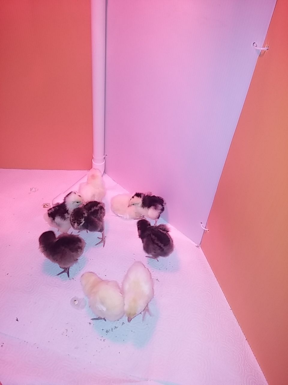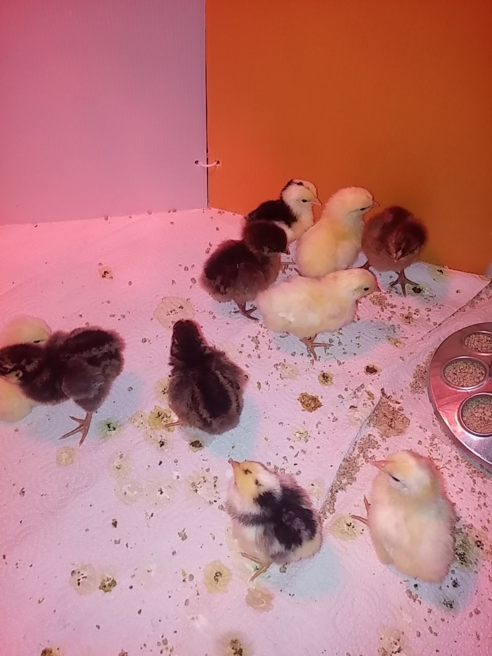 Getting use to the place can't you tell, what a mess already. First night on paper towel, wow they are fast to see them running fast as they do is amusing.