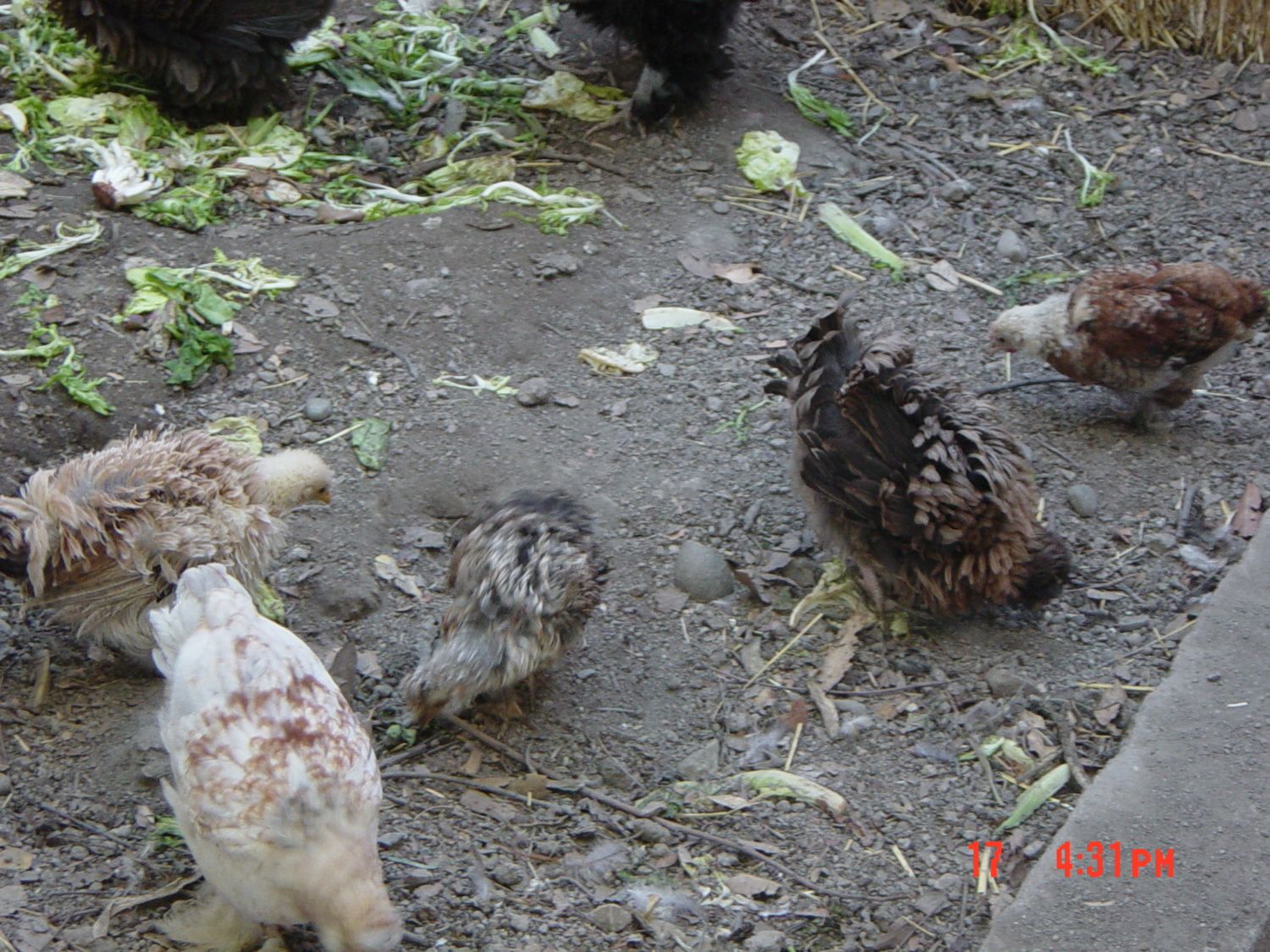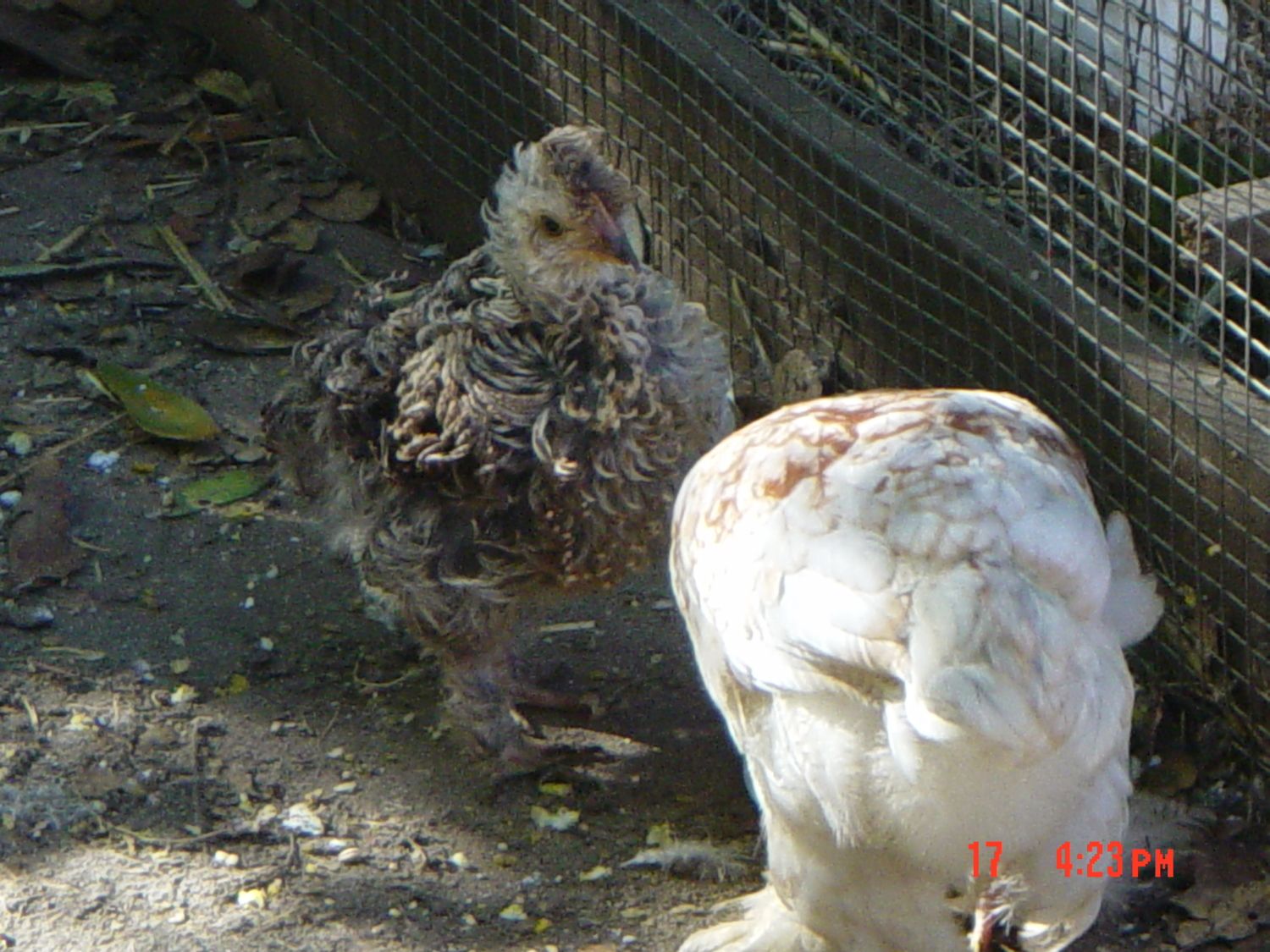 I was out snapping pics of my flock and adoring them. It reminded me of my post and how lucky those frozen eggs were to be rescued. I thought Id share a pic of the five survivors and one of my especially good lookers. Im certain it is one of the babies with the very curly down. Tiny Tim (Tina) has such dense curls that she looks and feels like a poodle.