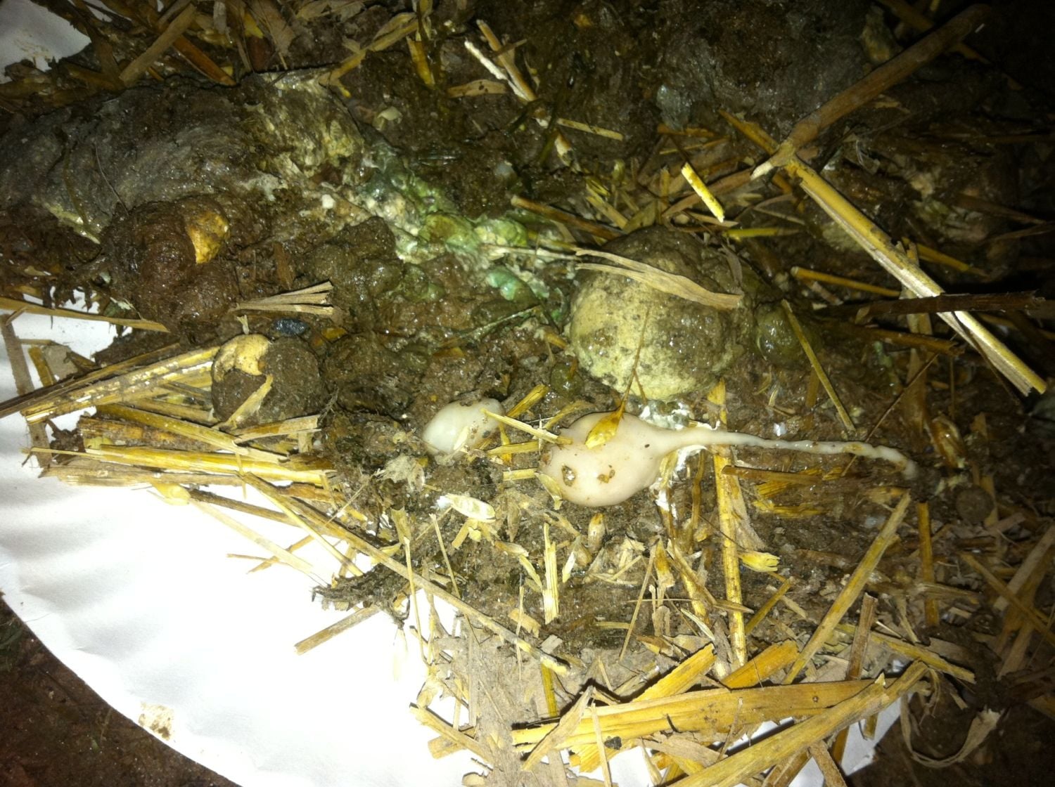 Neither the "pod" nor the "yolks(?)" were smelly. I have 2 generations of chickens; one that is 2 years 1.5 months old and another that will be turning 1 year old on May 8th. They have a large run and are out from 8:30 AM to Sunset (now around 7:40 PM but some go in around 8). One has calcium buildup on her eggs (I'm trying to keep her stress low, and she's a newer layer). She doesn't sleep on this roost often, but she may have been on there today before being kicked off. Do you have any idea what these are and what causes them? I'm assuming there is something seriously wrong here.