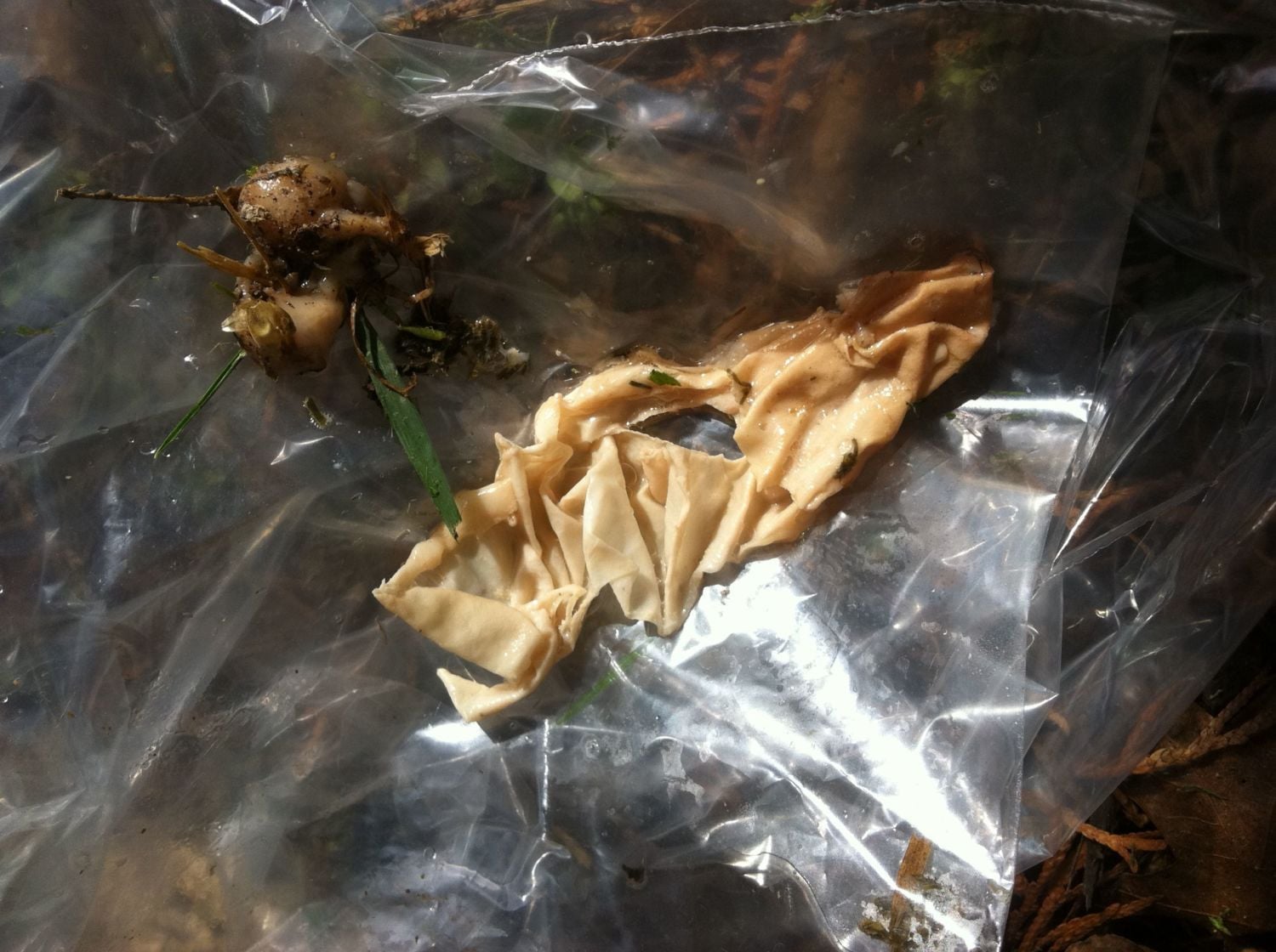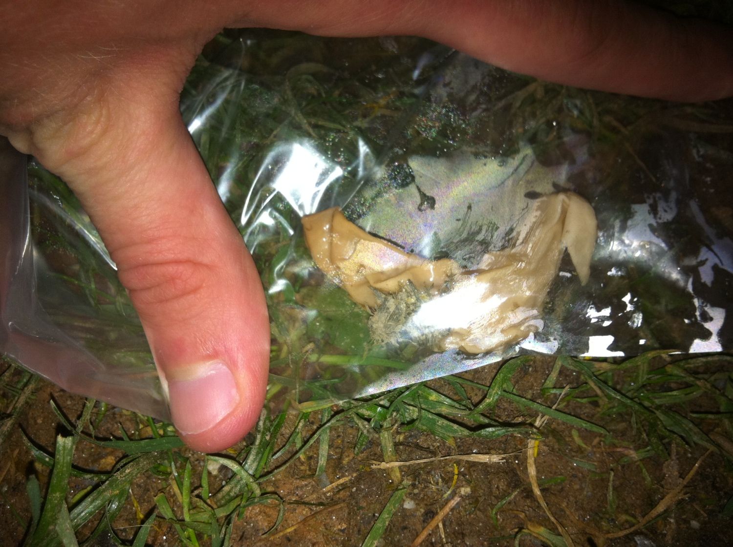 This "pod" was cold, wet, and felt rubbery, but more like a balloon kind of rubber, just thicker.