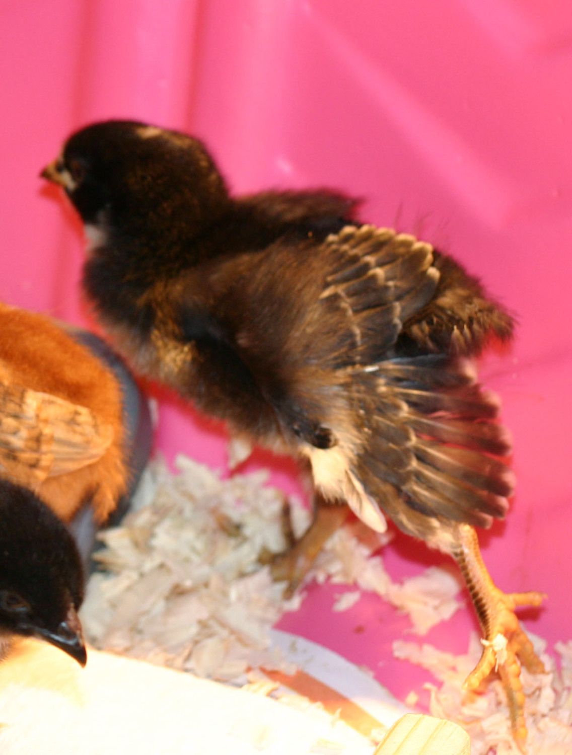 Anyway. Those were some peculiar things I wasn't really expecting to see little tiny chicks do. Also, around what age should I expect them to start roosting? I have a stick going across their cage as a roost (about 5-6" up) and they occasionally try to get up on it, but can't quite yet.. and can't balance on it if we help them onto it. So, right now, they still pretty much sleep all piled up together (but are not piled together when they're awake).