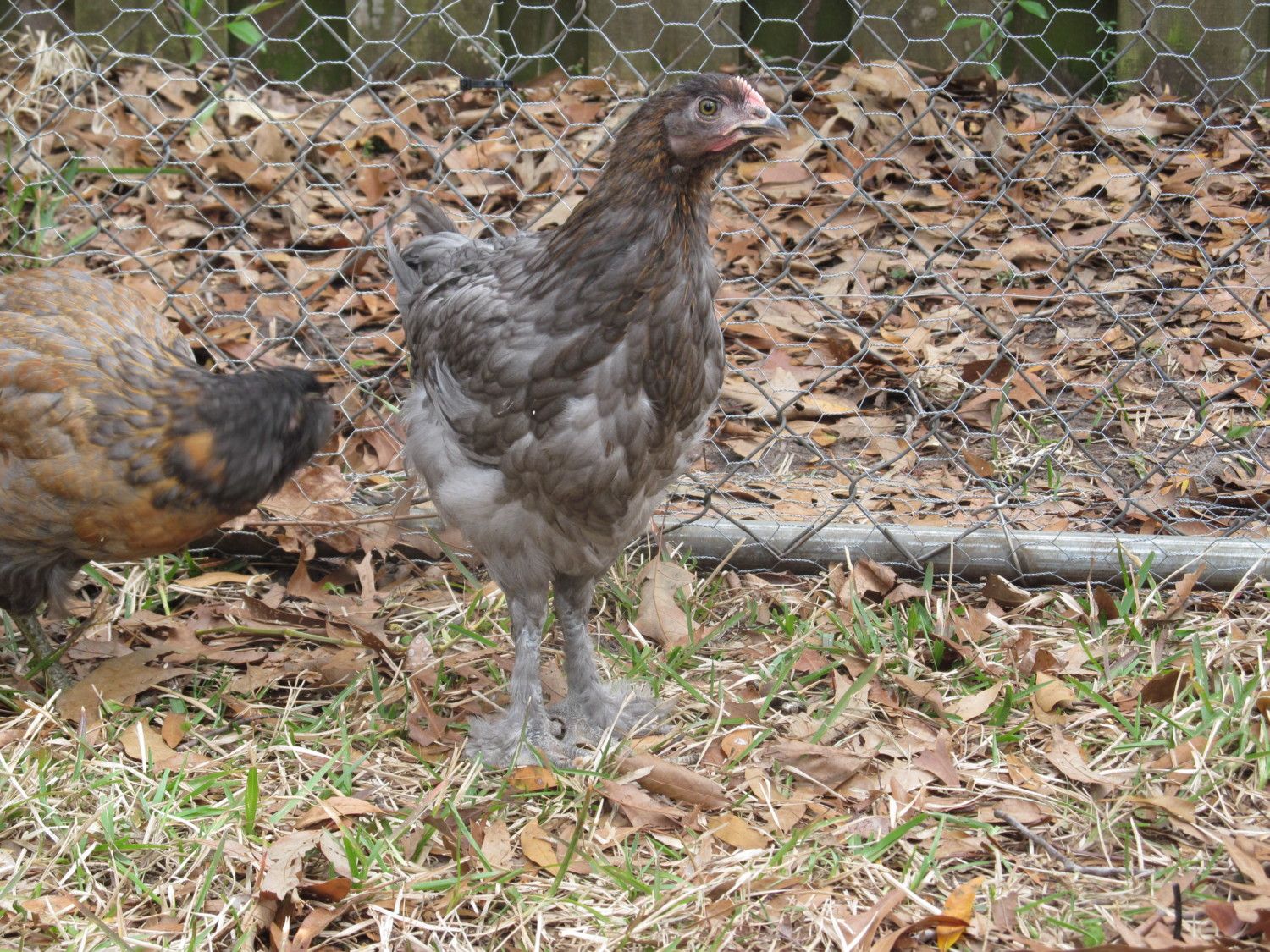 My Blue Copper Marans still young. We got them in January. My friend has 2 pullets and 1 cockerel, and I have 2 pullets. They are beautiful birds. The ones that I have are very docile. I love their feathered feet. My friend is hoping to breed Olive Eggers with hers, but that is a little ways down the road!